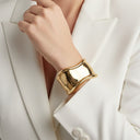 Expertly crafted from 18K gold vermeil over a solid 925 sterling silver base, it radiates a warm, golden finish designed to endure. Measuring 16.5 cm in circumference with a 43 mm band width, this sculptural cuff offers both durability and comfort—making it a striking accessory for everyday elegance or elevated ensembles.