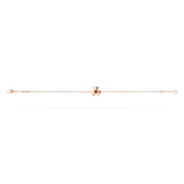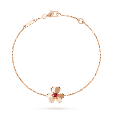 Delicately designed, the Frivole Ruby Clover Bracelet blends romantic charm with timeless elegance. Expertly crafted from 925 sterling silver and finished in 18K rose gold vermeil, it features a graceful four-leaf clover motif centered with a vivid lab-grown ruby.