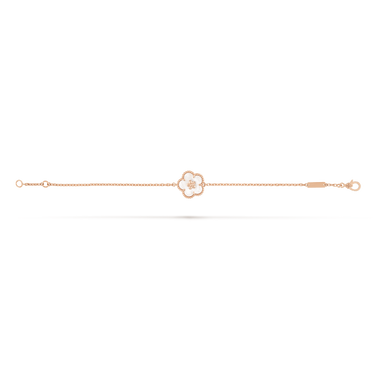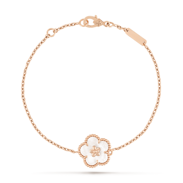 The Lucky Spring Plum Blossom Bracelet beautifully captures the grace of nature with its luminous plum blossom motif, delicately accented by a radiant pearl at the center. Crafted from 18K rose gold vermeil over a 925 sterling silver base, it offers a soft, elegant glow that complements any style.