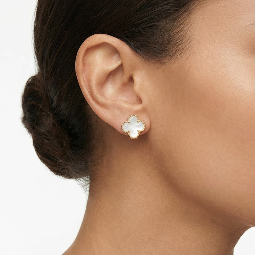 The Clover Medium Stud Earrings blend classic elegance with soft iridescence through their iconic four-leaf design. Featuring luminous mother-of-pearl inlays, each earring reflects light beautifully, creating a refined statement suitable for any occasion.