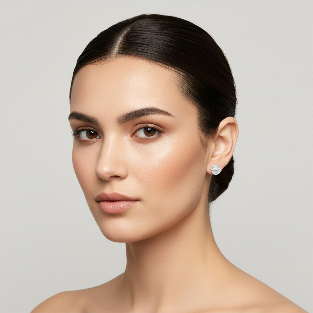 Elevated in their simplicity, the Engraved Circle Stud Earrings feature a clean, modern silhouette with timeless appeal. Crafted from 925 sterling silver and finished in polished 18K white gold vermeil, each stud showcases a finely engraved circular face that adds subtle character to the minimal design.