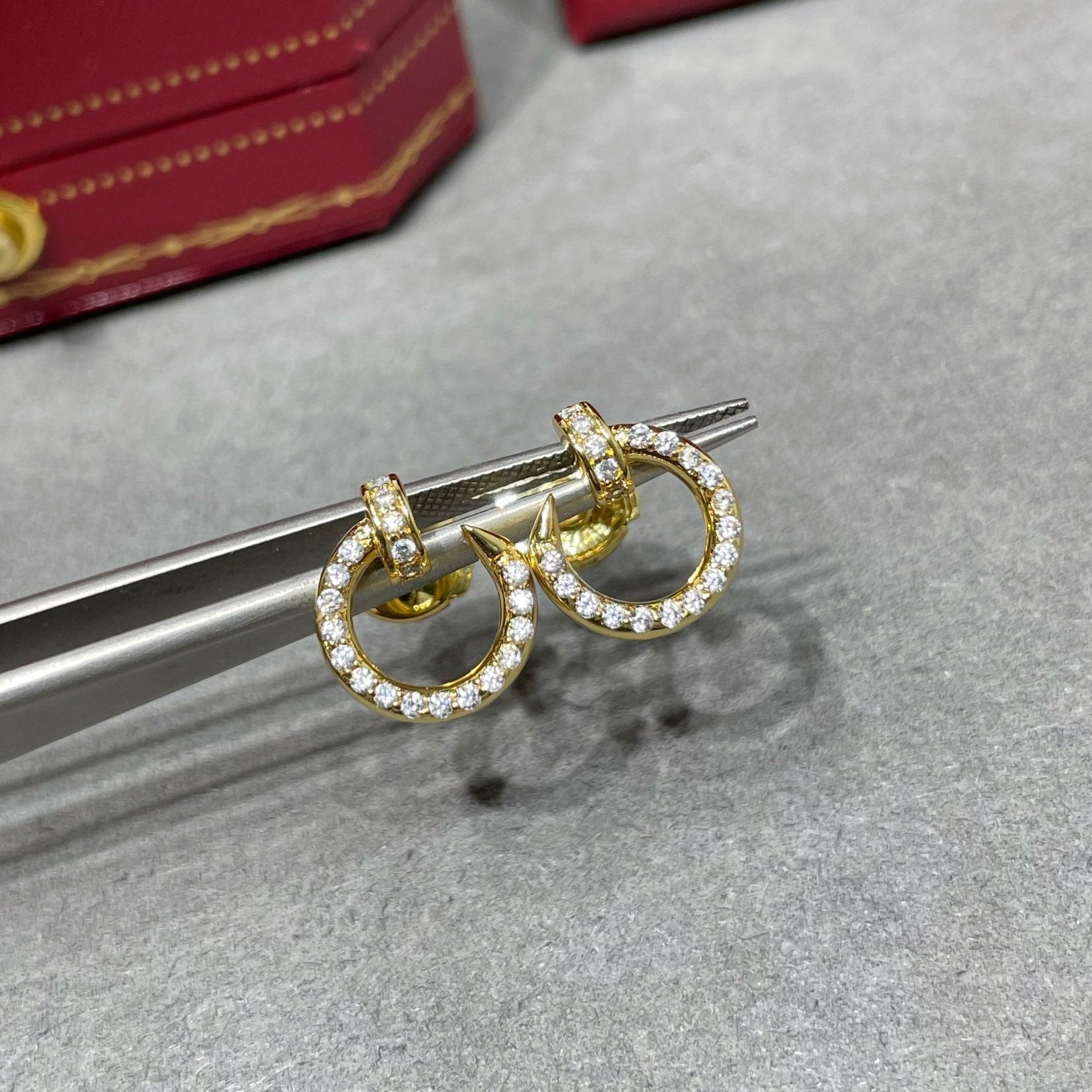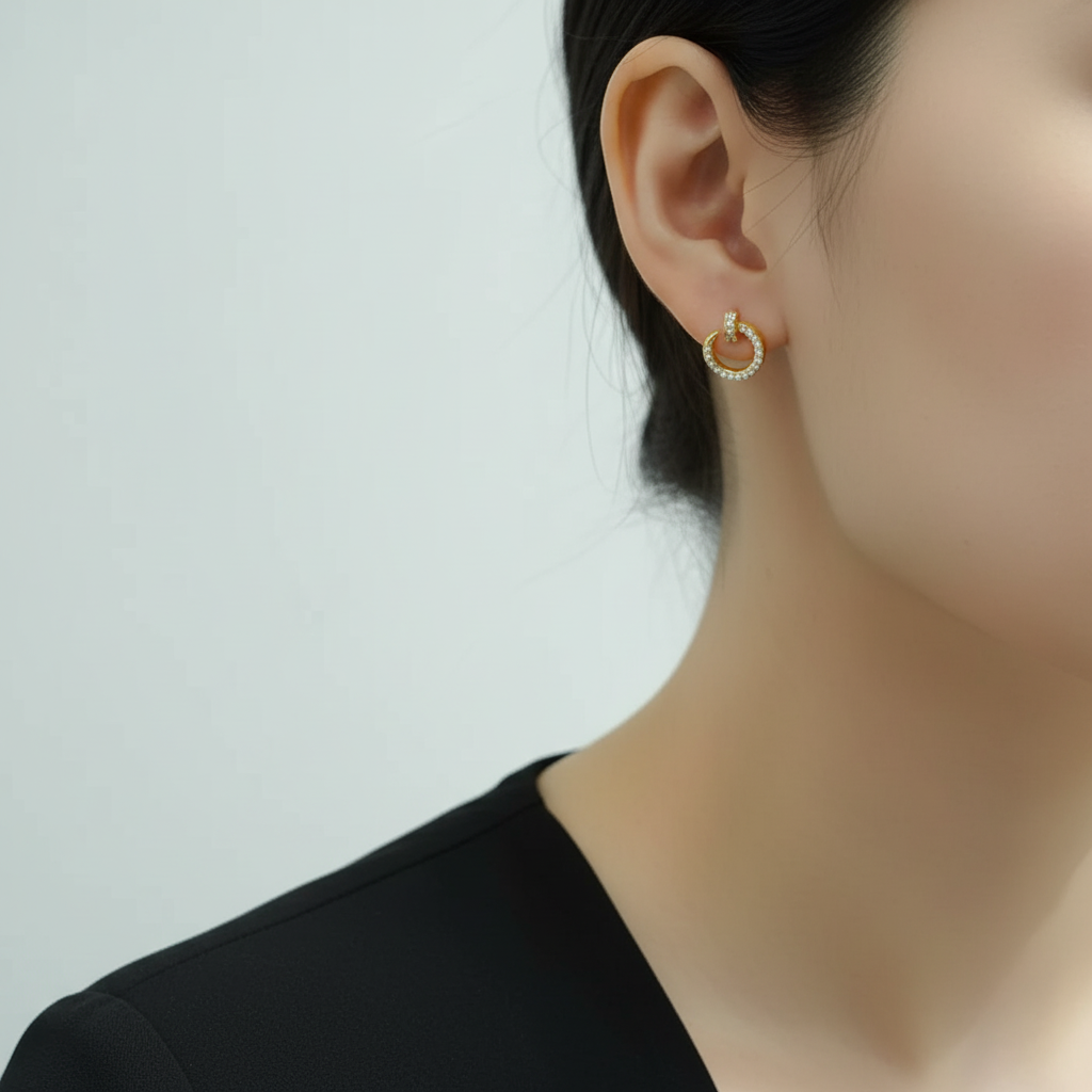 Each earring is pavé-set with high-quality cubic zirconia, adding subtle sparkle that enhances the design without overwhelming its minimalist elegance.