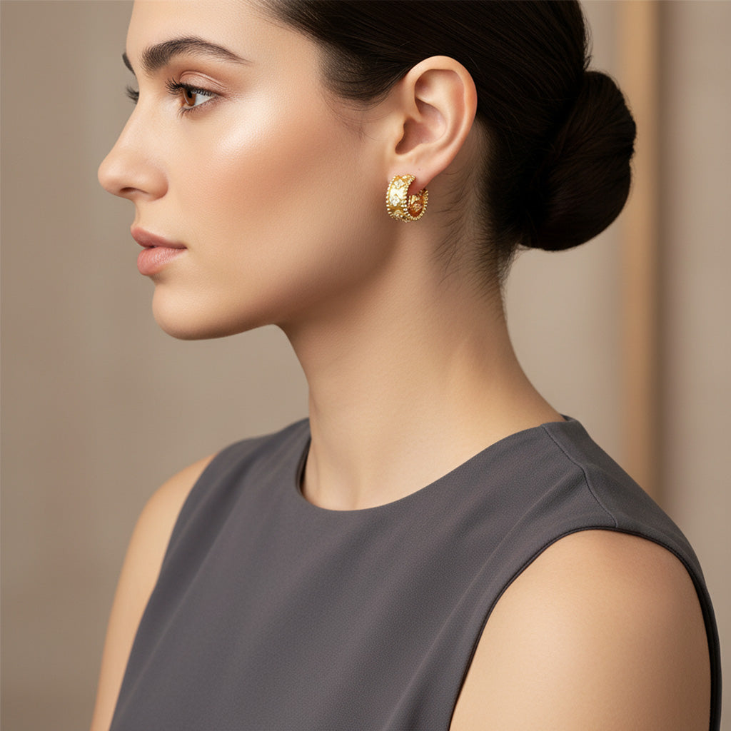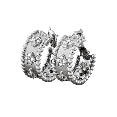 The Perlée Clovers Hoop Earrings combine classic elegance with intricate craftsmanship. Made from 925 sterling silver and finished in radiant 18K gold vermeil, these hoops offer a luxurious look with timeless appeal.