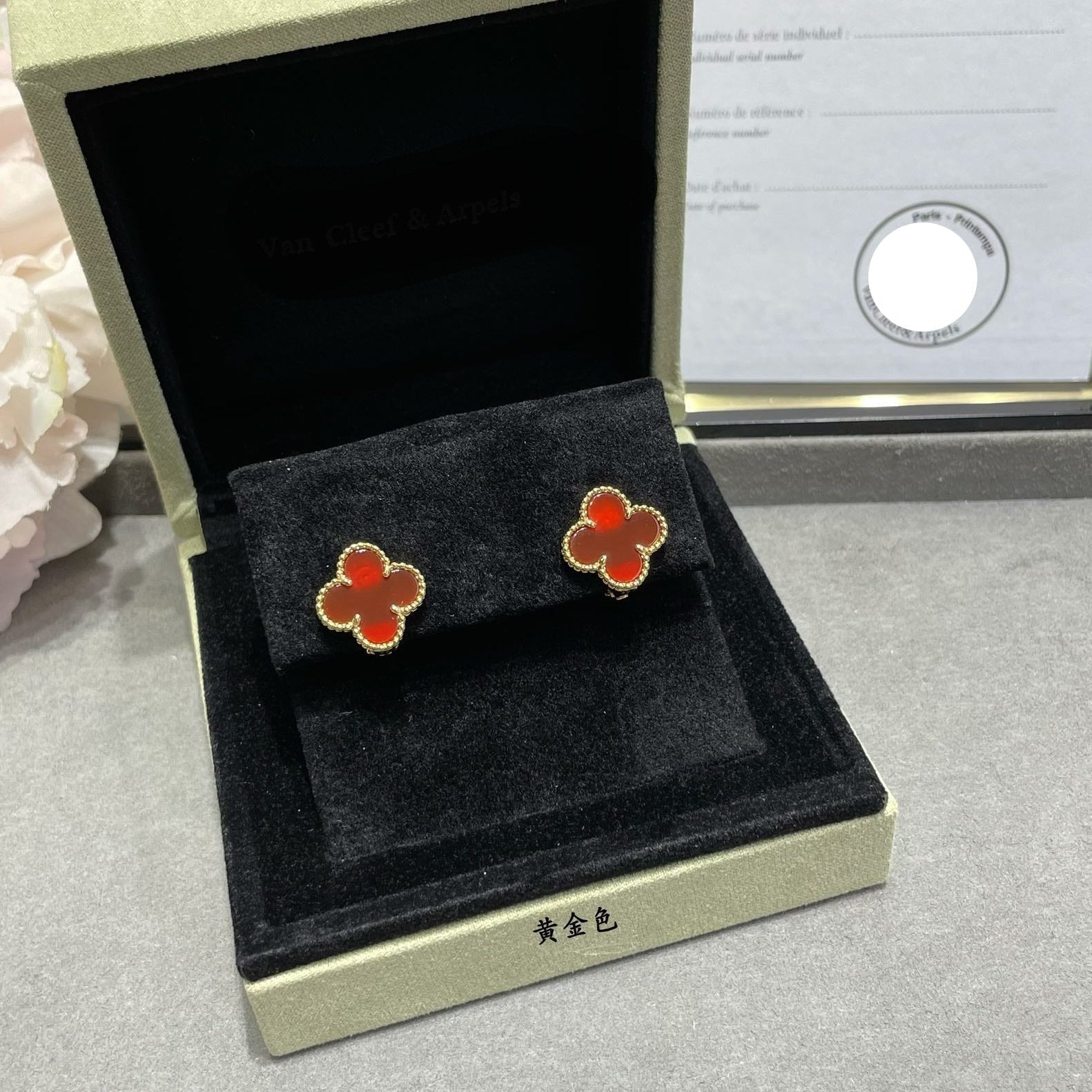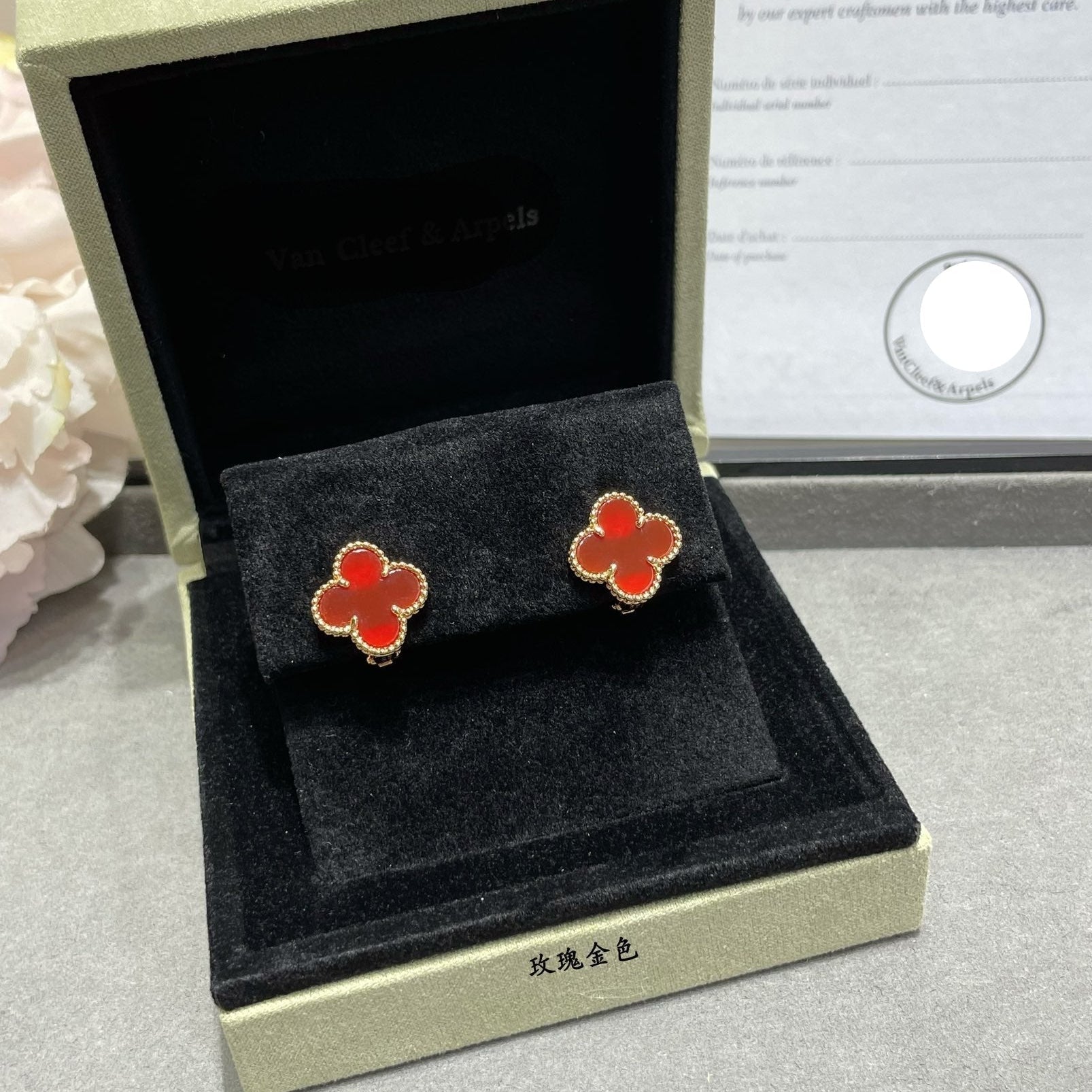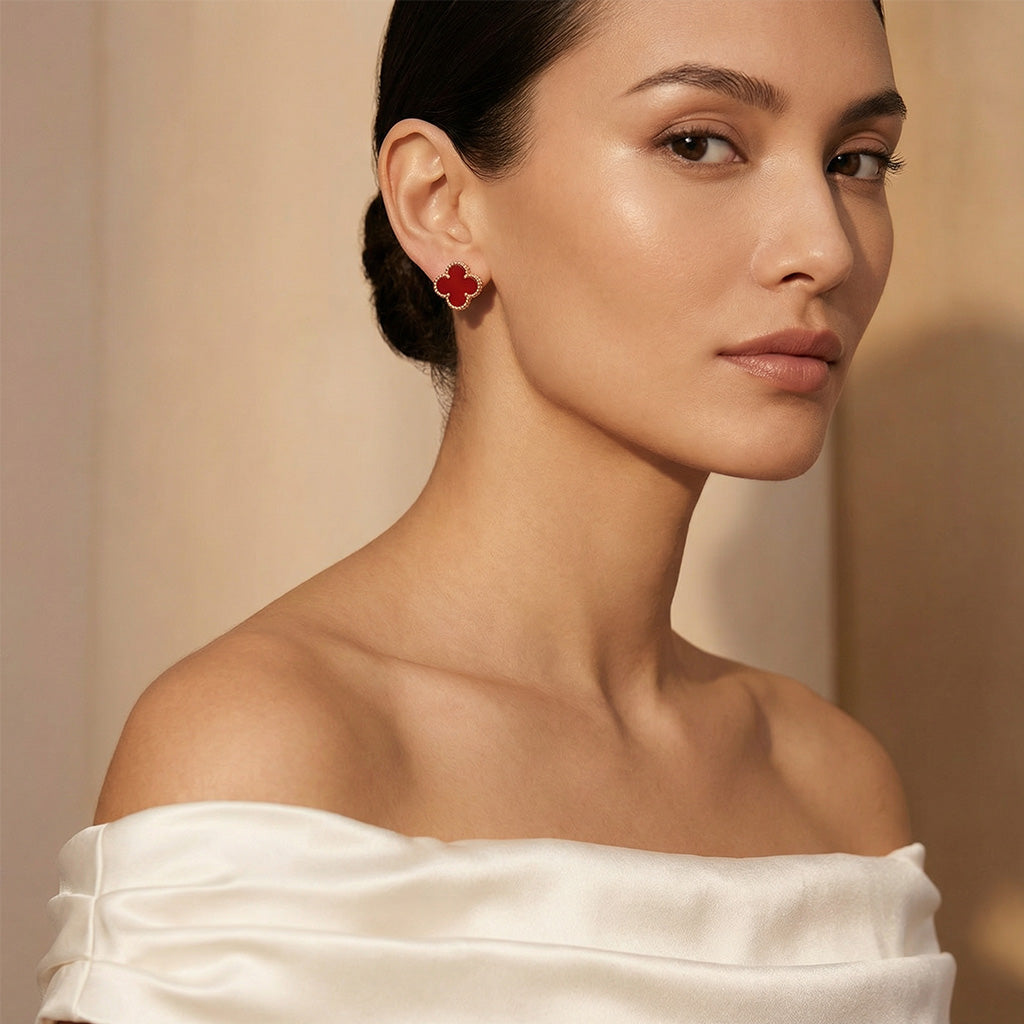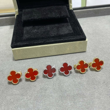 The Vintage Alhambra Carnelian Earrings bring a bold expression of classic elegance with a vibrant red hue inspired by heritage design. Featuring rich carnelian stones framed in a warm gold setting, these earrings evoke refined beauty and timeless appeal.