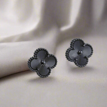 The Vintage Alhambra Black Enamel Earrings are a refined expression of timeless charm, blending classic design with bold, modern character. Inspired by British heritage motifs, their clover-shaped silhouette is accented with sleek black enamel for a distinctive, polished look.