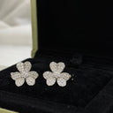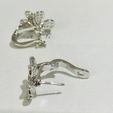 Crafted from a 925 sterling silver core and finished with 18K white gold vermeil, these earrings deliver radiant shine and lasting durability. Each five-petal flower is fully encrusted with brilliant-cut cubic zirconia (CZ) stones, designed to catch the light and add a refined shimmer without overwhelming the minimalist design.