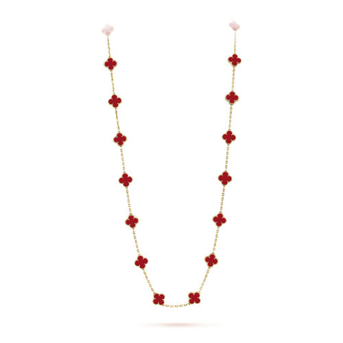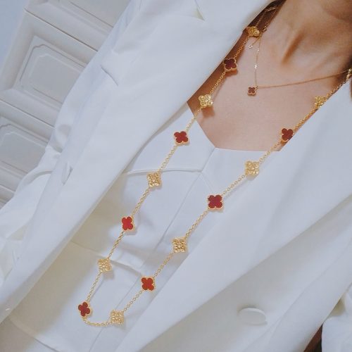 Pnstime Vintage Alhambra Carnelian Diamond 20 Motifs Long Necklace Jewelry Gift