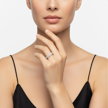 A seamless row of floral cluster motifs is set with brilliant cubic zirconia (CZ) stones, adding continuous sparkle and a soft, romantic touch. With a graceful 5 mm width, this ring symbolizes love, growth, and enduring beauty.