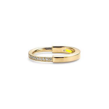 Finished in radiant yellow gold, this ring balances minimalist style with lasting brilliance, and is available in US sizes 6 to 8.