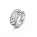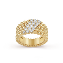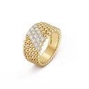 The Perlée Five Row Pavé Ring showcases bold elegance with its layered texture and radiant sparkle. Crafted from a durable 925 sterling silver base and finished in luminous 18K gold vermeil, it features five rows of polished beaded detailing, each accented with pavé-set cubic zirconia (CZ) stones for a refined shimmer.