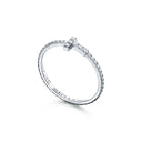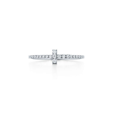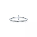 The slim 3.5 mm band features a sleek T-shaped design, adorned with meticulously set cubic zirconia (CZ) stones that extend halfway around the band.