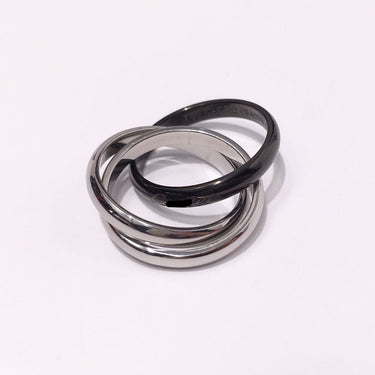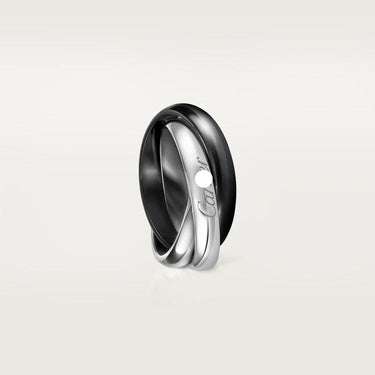 This triple-band ring blends modern design with timeless elegance. Featuring an intertwined silhouette, it combines glossy black ceramic with radiant 18K gold vermeil for a bold, high-contrast finish.