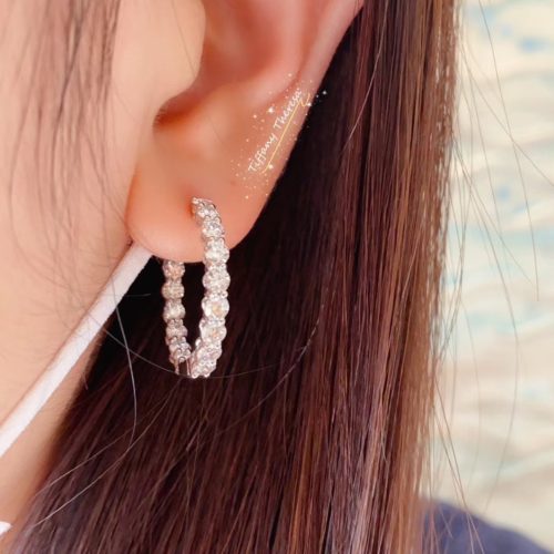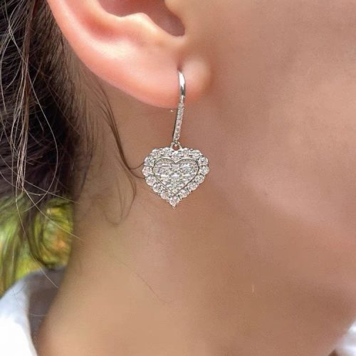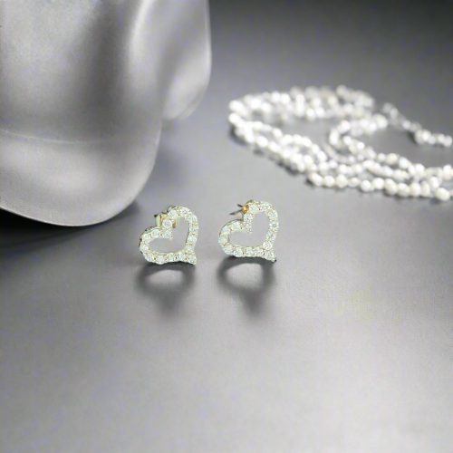 Pnstime T Heart Diamonds Rose Gold Earrings