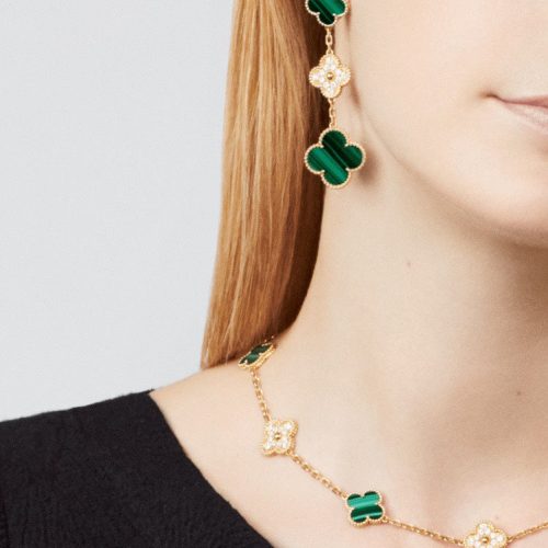 Pnstime Magic Alhambra Malachite Three Motifs Clover Earrings Elegant