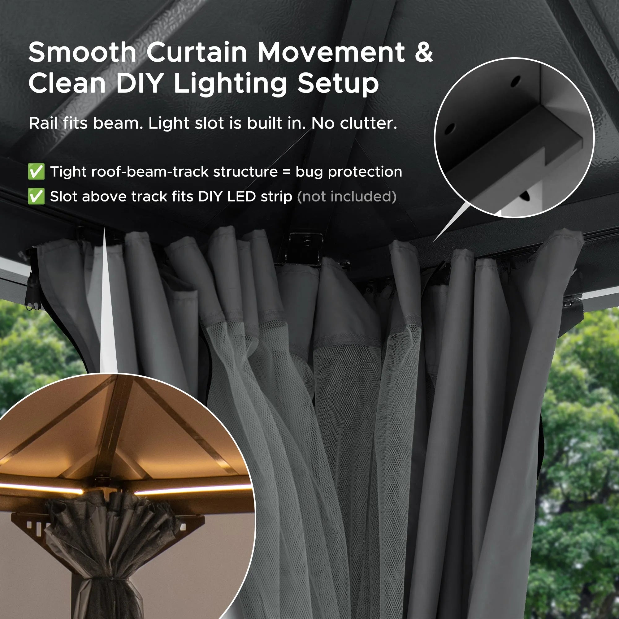 12×10 Gazebo with Netting & Curtain | Steel Roof – Gray Aluminum Posts