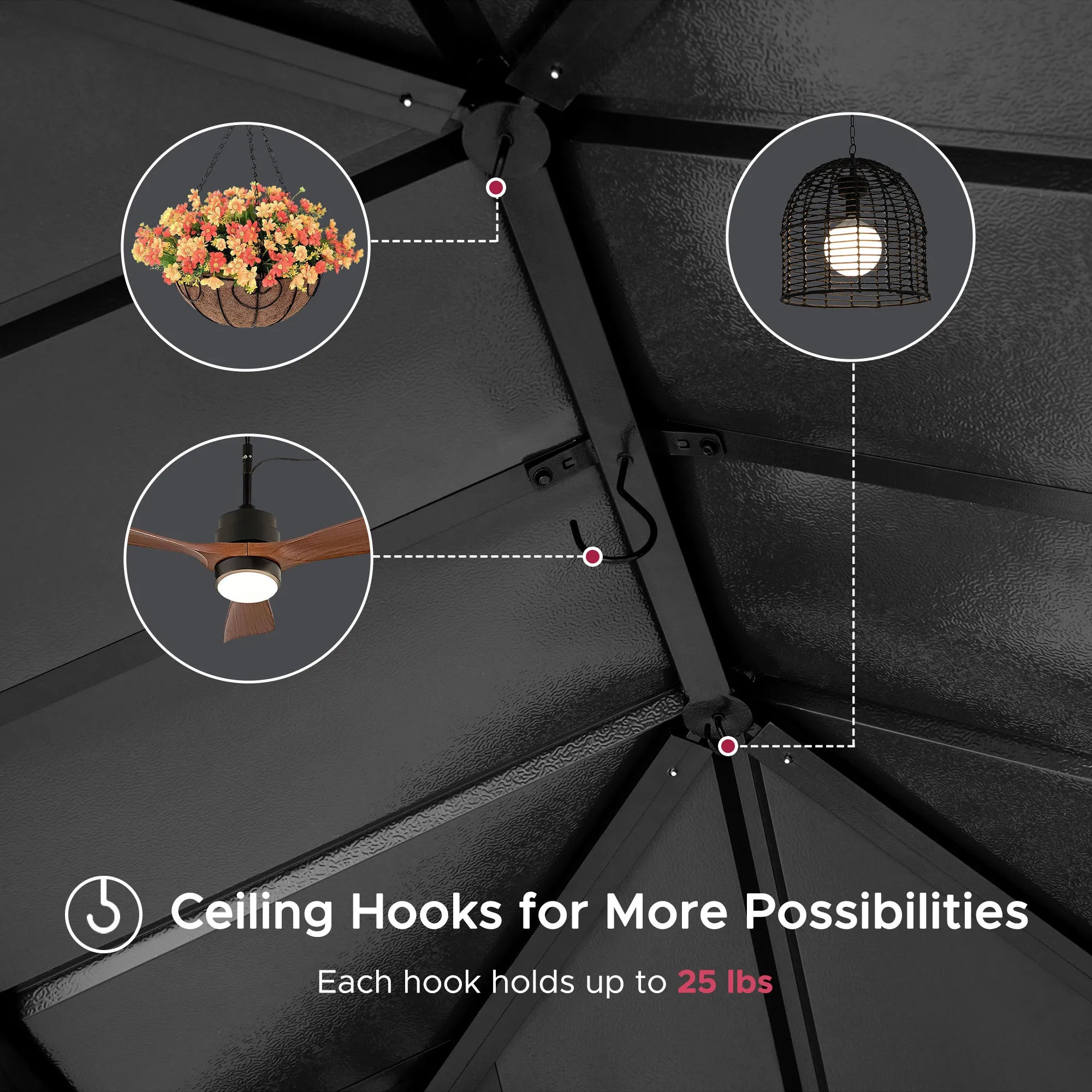 Transform your outdoor space into a private retreat with the 12×10 Gazebo. Designed for lasting performance and refined aesthetics, this metal-roof gazebo features rust-resistant aluminum posts with a realistic woodgrain finish and a strong galvanized steel roof that shields you from sun, rain, and snow.