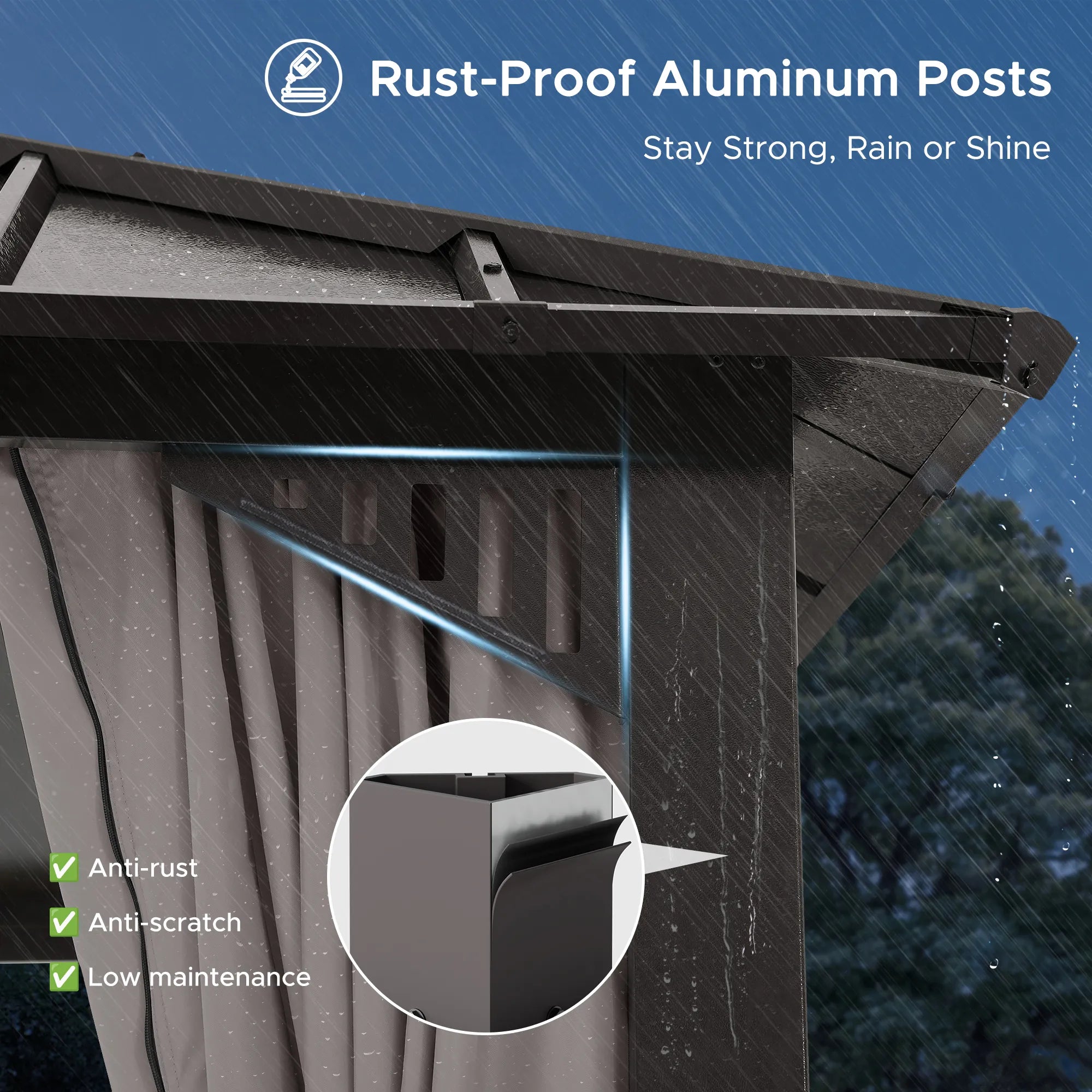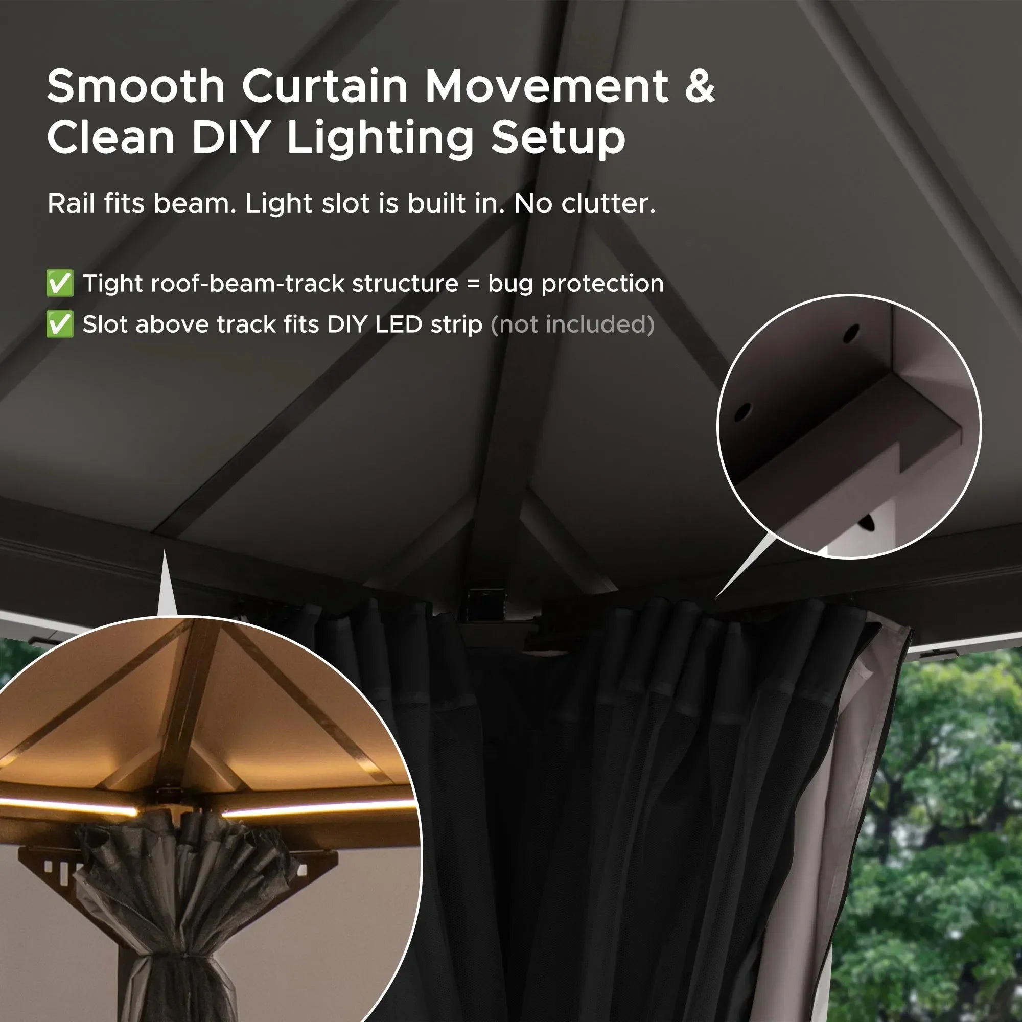 12×16 Gazebo with Netting & Curtain | Steel & PC Roof – Brown Aluminum Posts