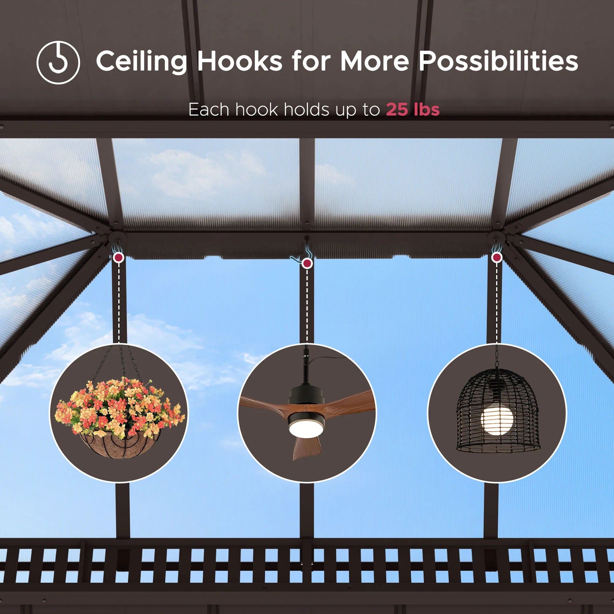 Escape into your own private outdoor retreat with the 16×12 Gazebo. This versatile patio gazebo features an innovative hybrid roof design: a durable galvanized steel top ensures longevity, while the integrated translucent PC vent panel gently diffuses sunlight—creating a space that’s shaded yet bright.