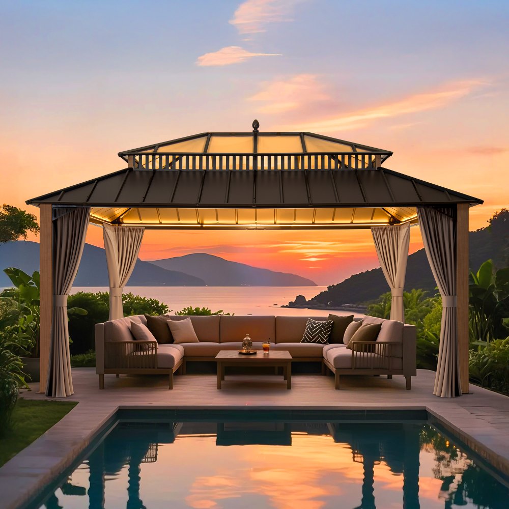 With its hybrid roof and clean design, whether placed on a patio, deck, or poolside, the Kingston Gazebo combines style, function, and comfort for your outdoor lifestyle.
