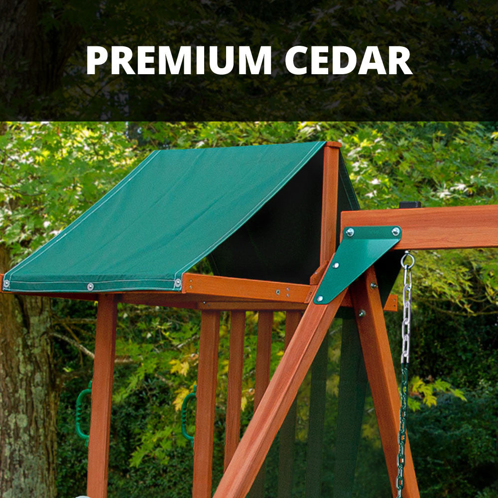 Our playsets are built from sustainably sourced cedar wood. We also make almost all our slides here in the US with 100% recyclable plastic. We gather all the plastic scraps and any defects from the slide formation process, and they are melted back into plastic sheets to be reused.