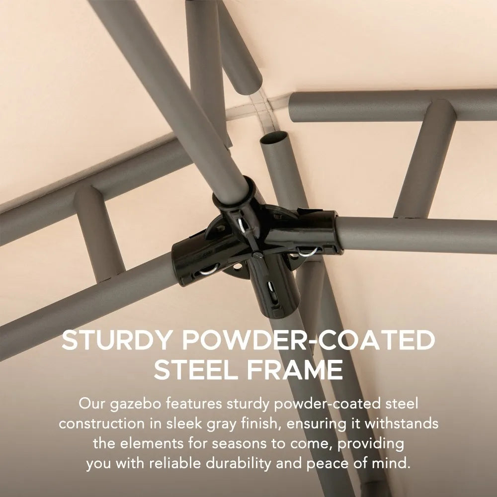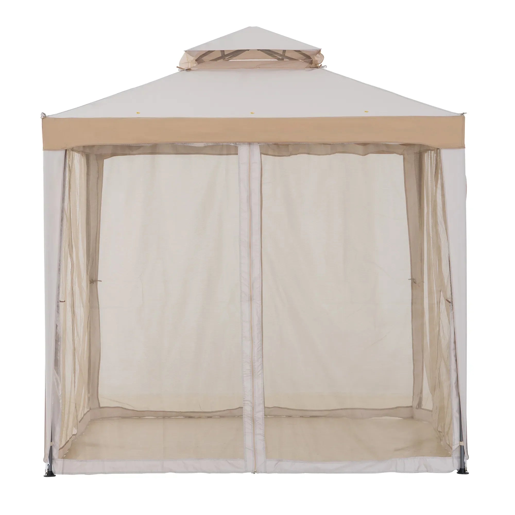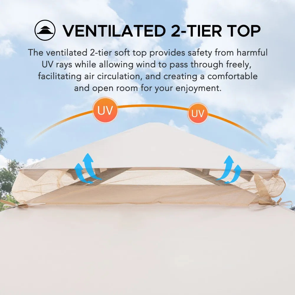 Enjoy comfort and creativity outdoors with the Beige Soft Top Gazebo. Featuring a vented canopy and breathable mesh curtains, this gazebo provides shade, insect protection, and a stylish retreat for your backyard, garden, or outdoor activities.