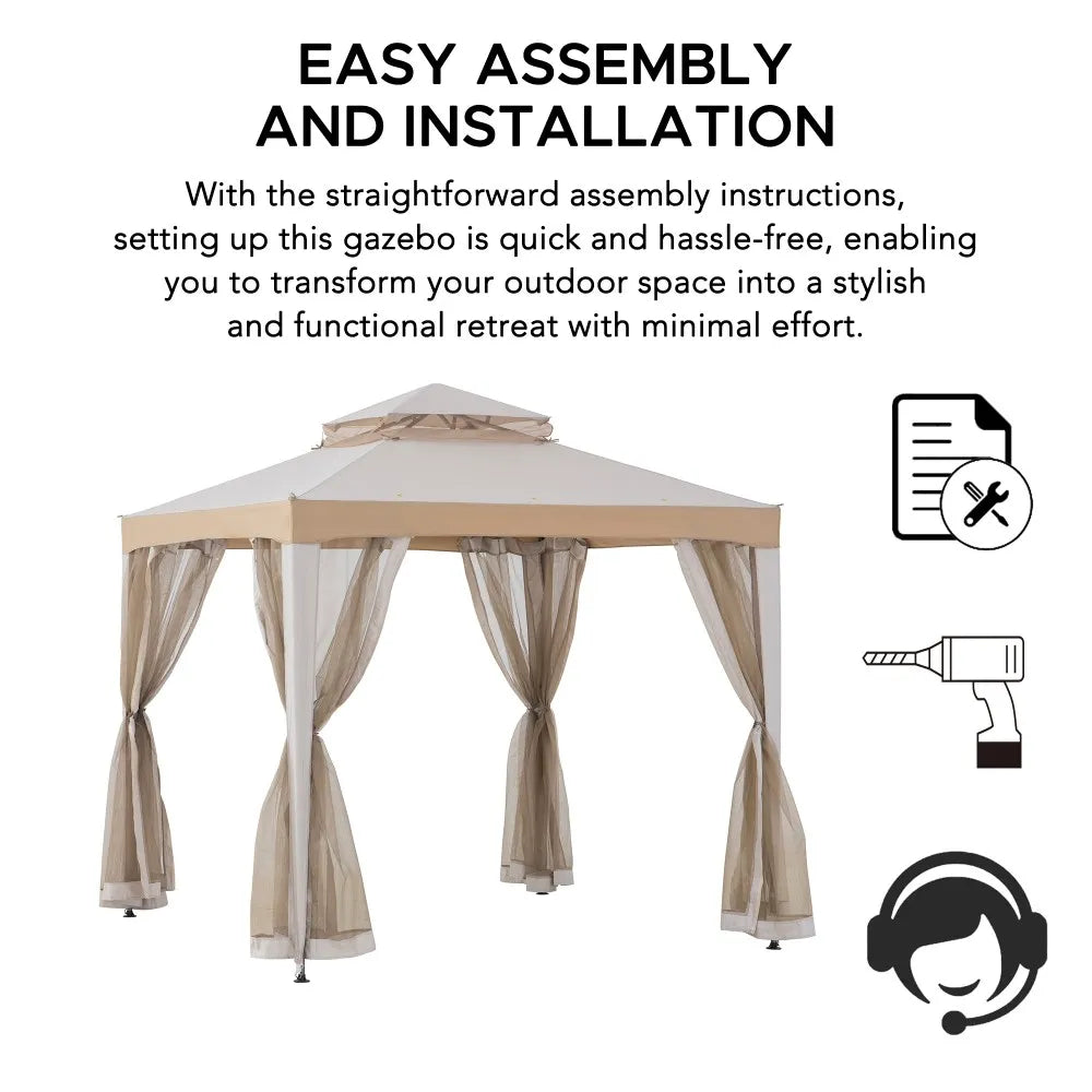 Beige Soft Top Gazebo With Mesh Curtains For Garden And Outdoor Activities