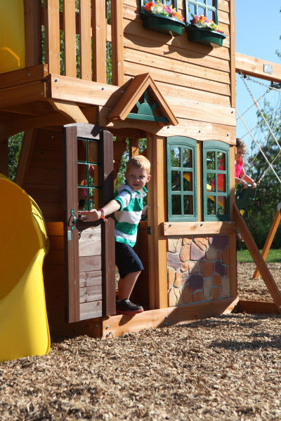 Bring endless adventure home with the Boulder Station Fort Playset, a beautifully crafted wooden fort designed to spark imagination and active play. From sliding and swinging to climbing and roleplay, this playset has everything your kids need for outdoor fun with friends.