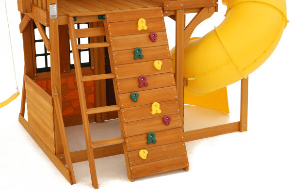 Boulder Station Fort Wooden Playset with Tube Slide, Swings & Clubhouse