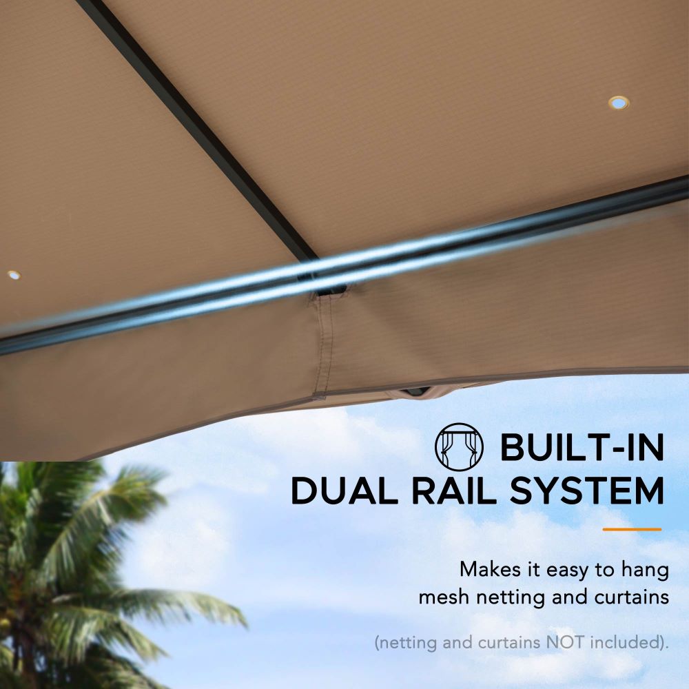 Enhance your outdoor living with this elegant brown fabric gazebo. Featuring a powder-coated black metal frame and a weather-resistant canopy, it creates a stylish and shaded retreat for dining, entertaining, or relaxing outdoors.