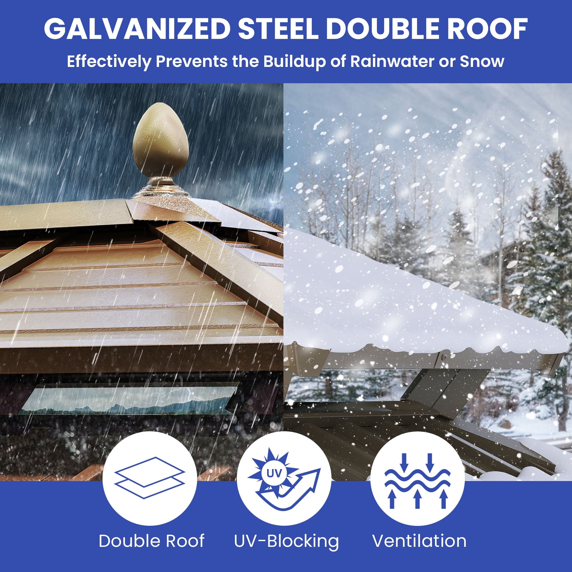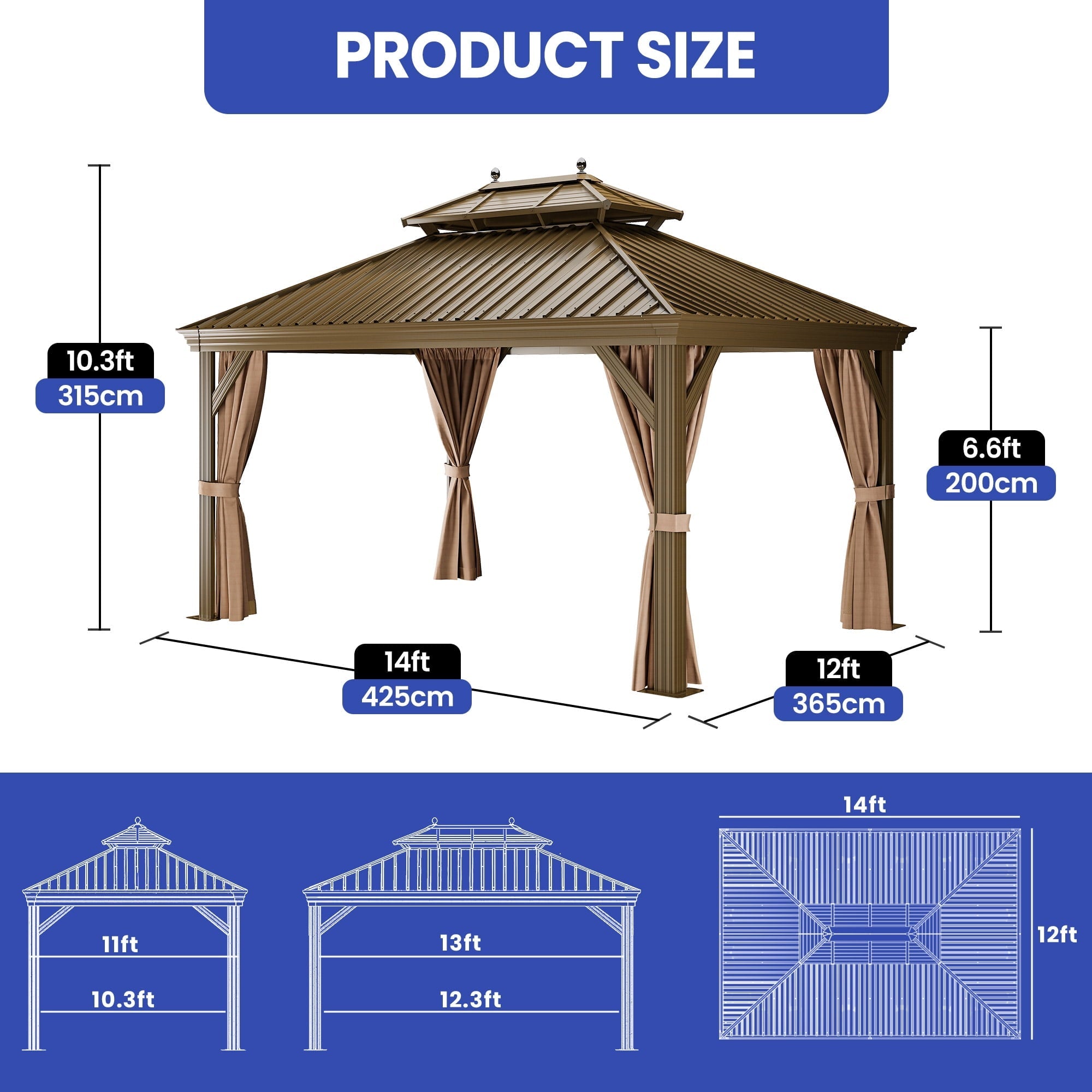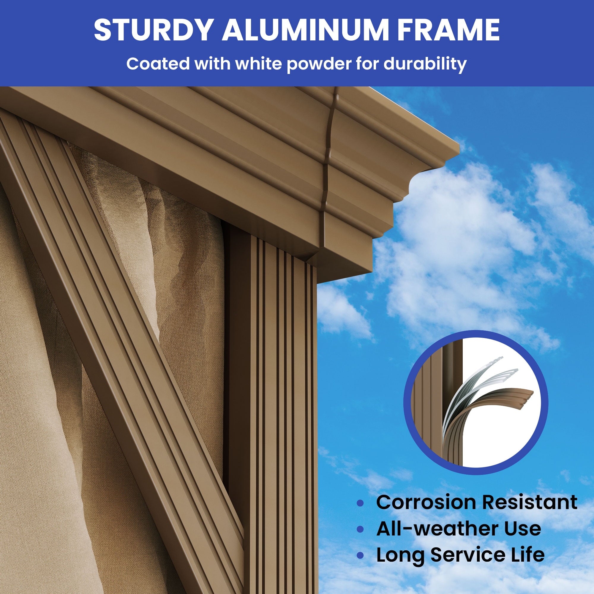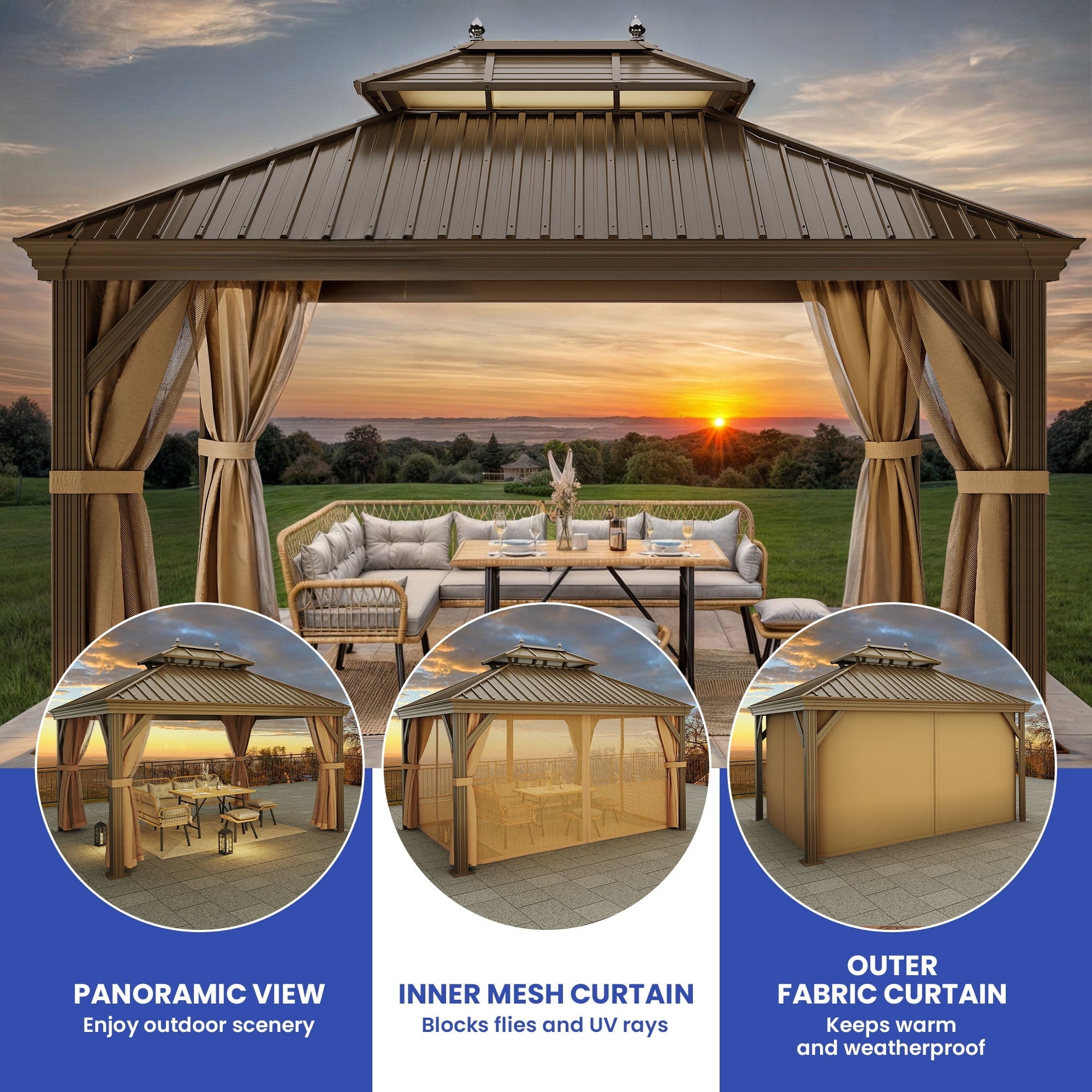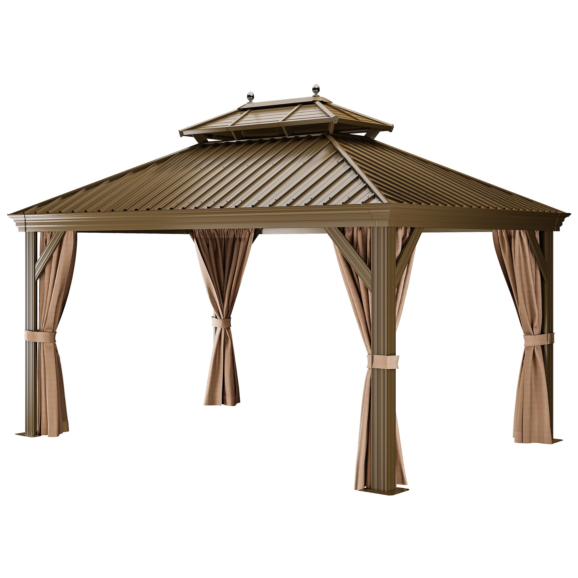 Transform your backyard or patio with this elegant brown metal gazebo. Featuring a vented roof and durable steel construction, it creates a shaded retreat for outdoor dining, relaxation, or entertaining guests.