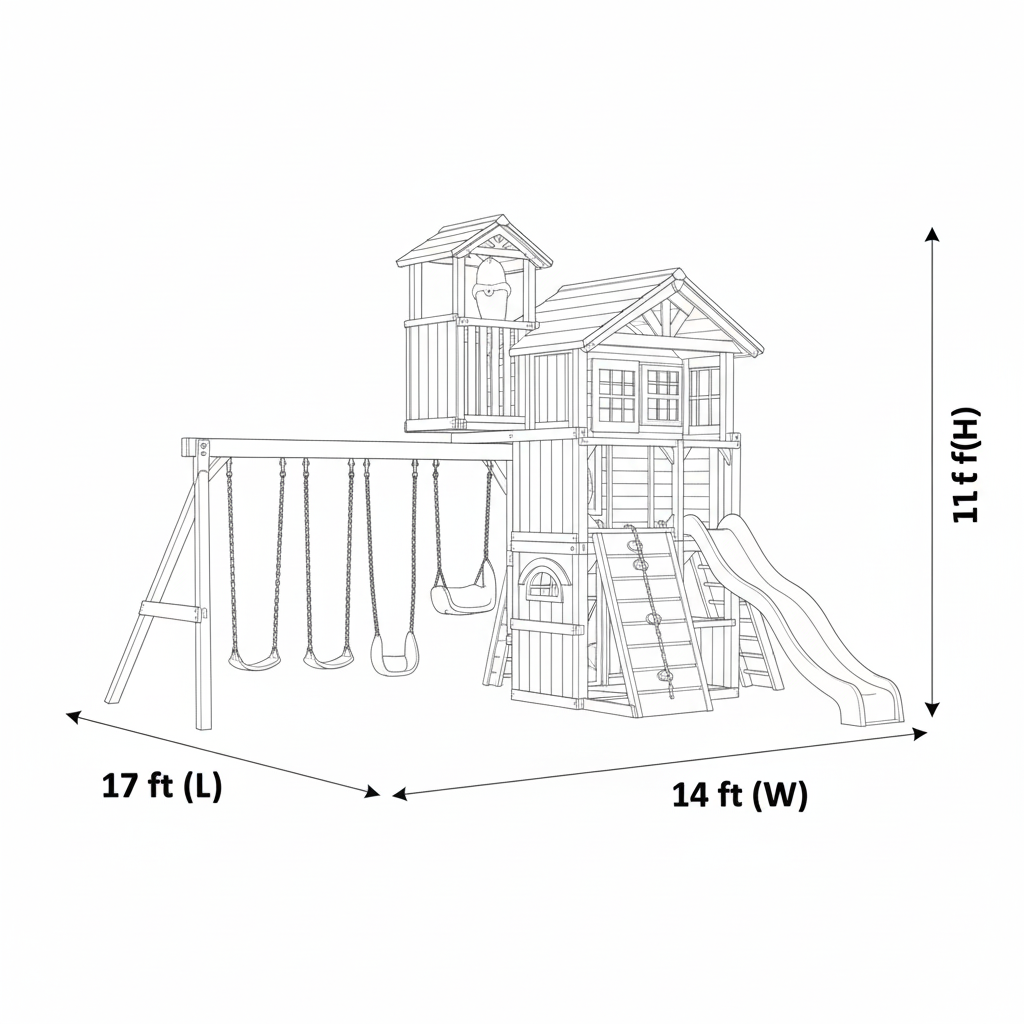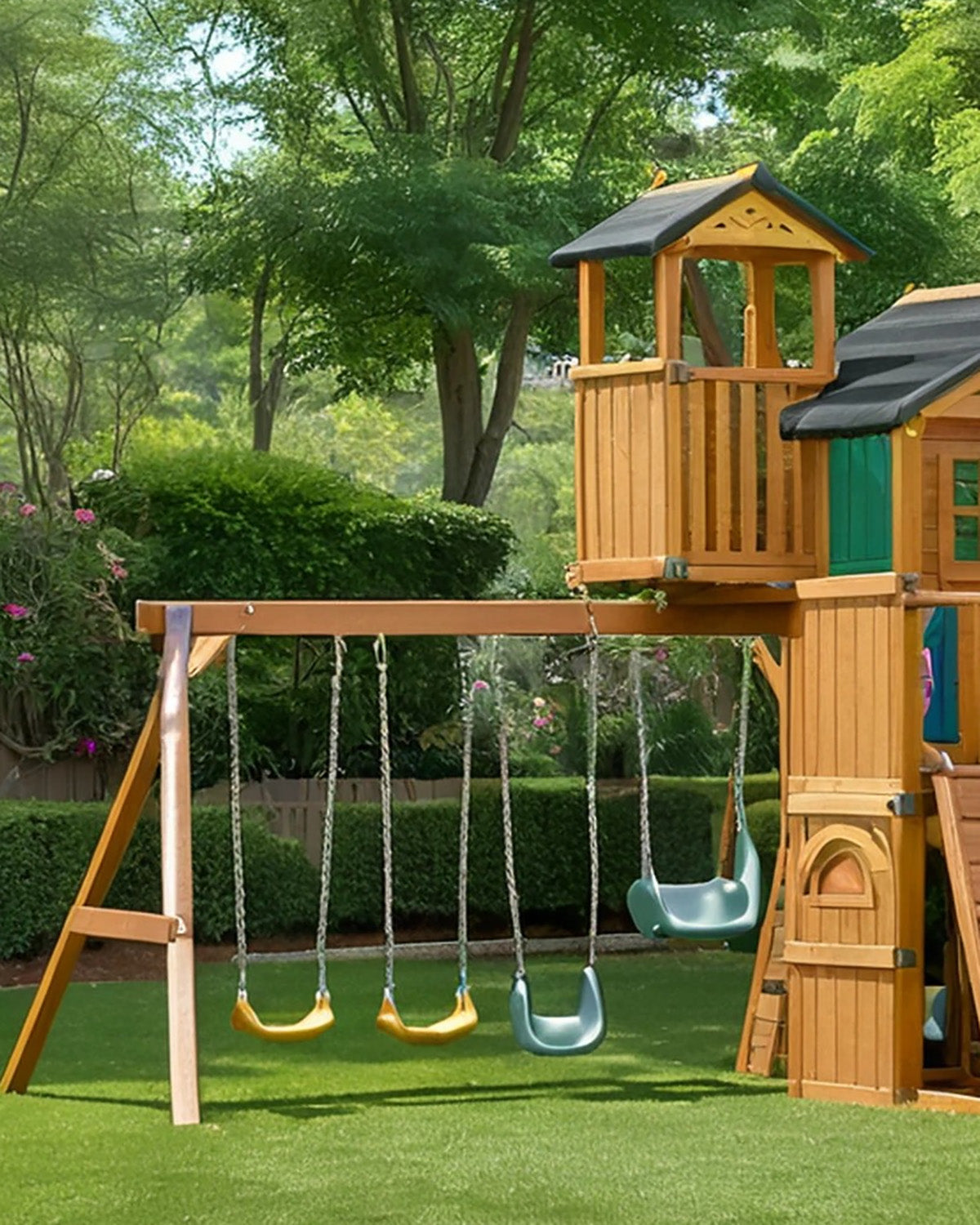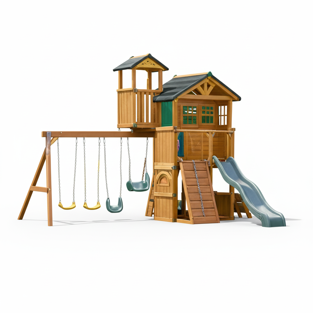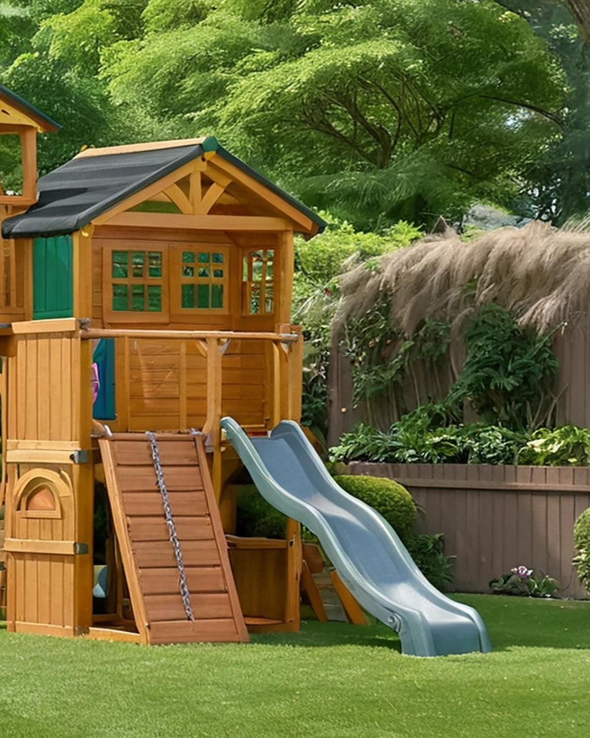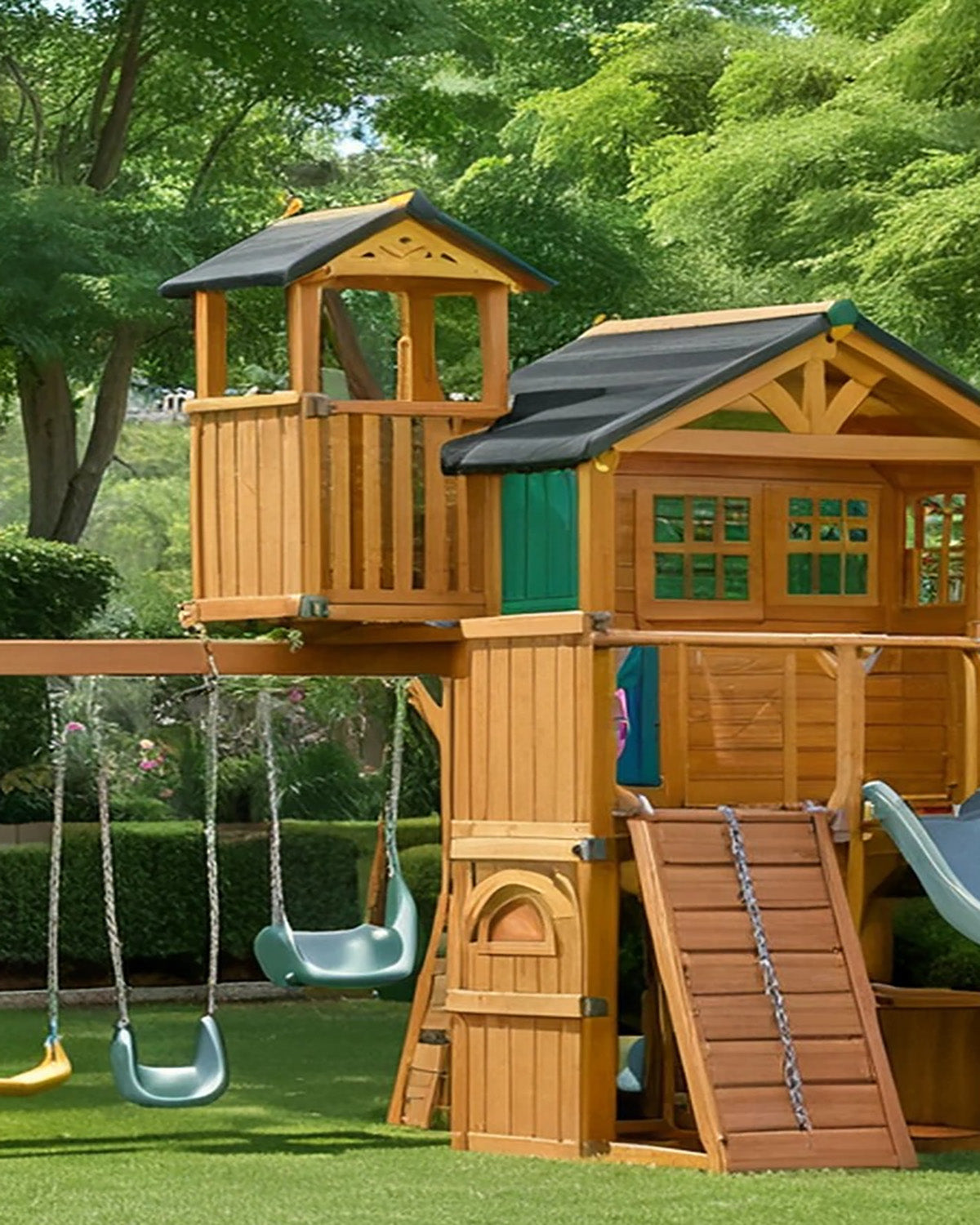 - Material: Solid cedar wood + heavy-duty slides/swings