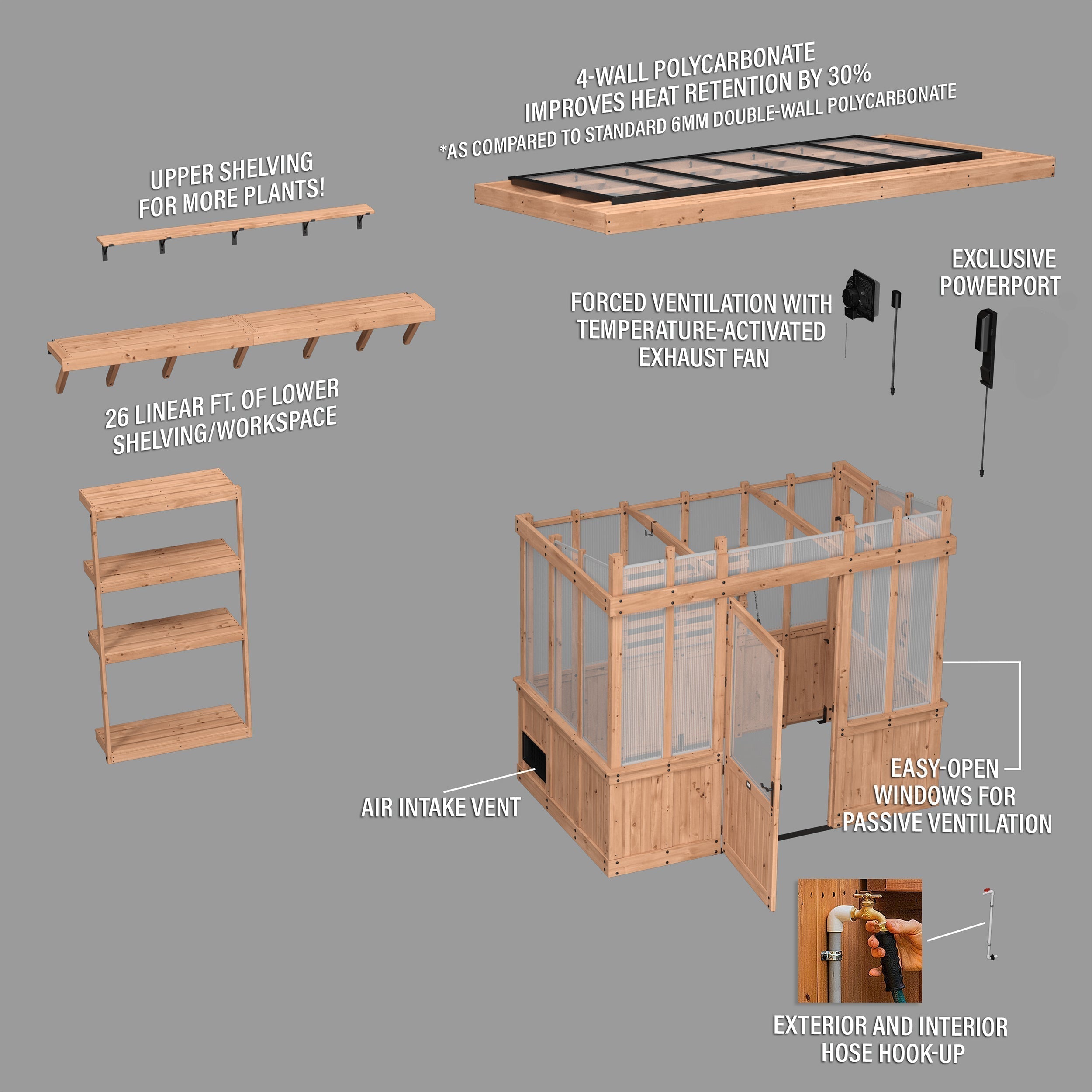 Elevate your garden with the Cedar Greenhouse with Pergola Roof a perfect blend of practicality and design that transforms your backyard into a lush, inspiring retreat.