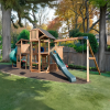 Cedar Wood Dual Tower Outdoor Playset with Slides, Swings, Bridge, and Climbing Features