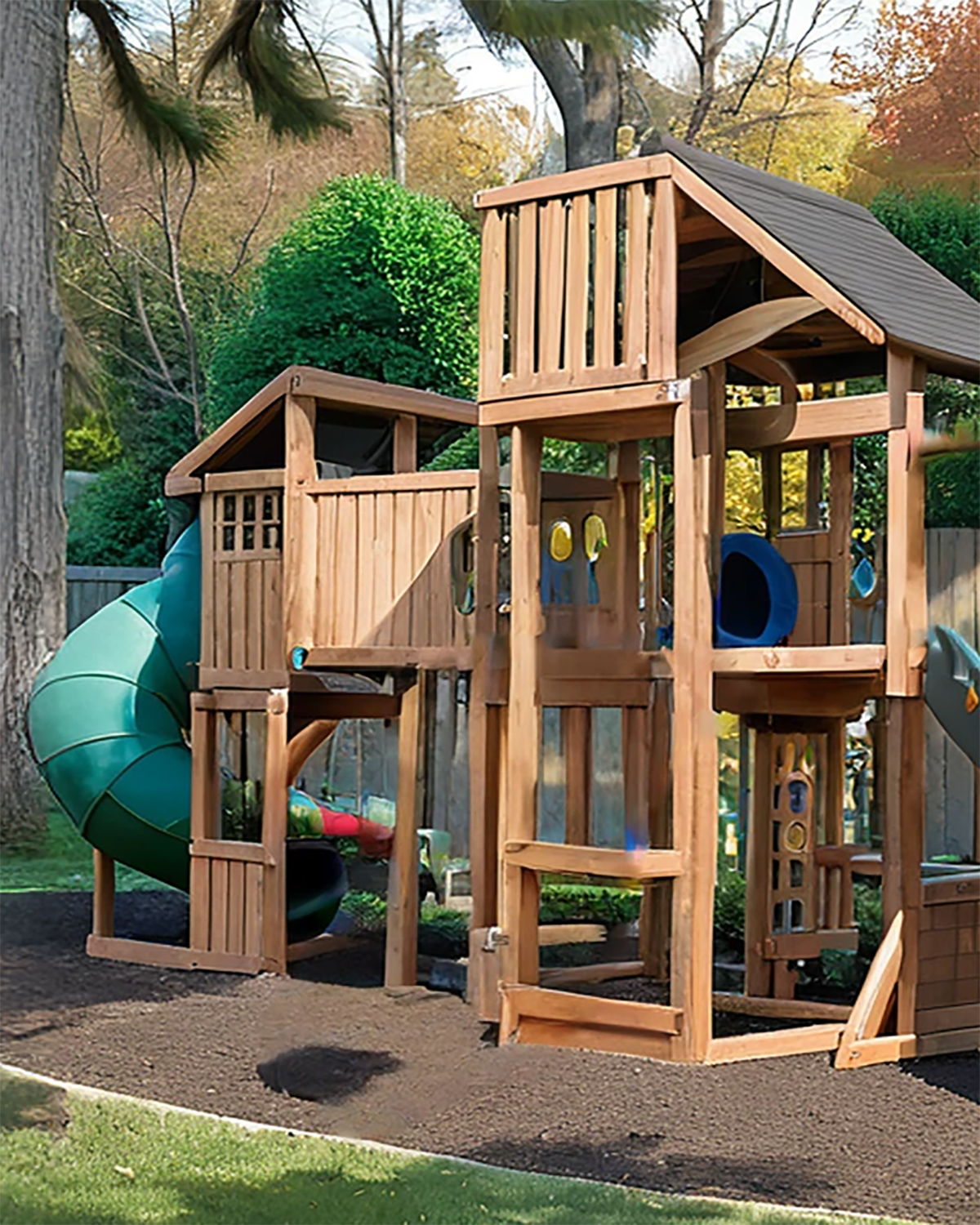 Turn your backyard into the ultimate playground with the Cedar Wood Dual Tower Outdoor Playset. Featuring two connected towers, multiple slides, swings, climbing activities, and a bridge, this playset offers endless fun, adventure, and imaginative play. Crafted from durable cedar wood, it’s safe, stylish, and built to last for years of active outdoor enjoyment.