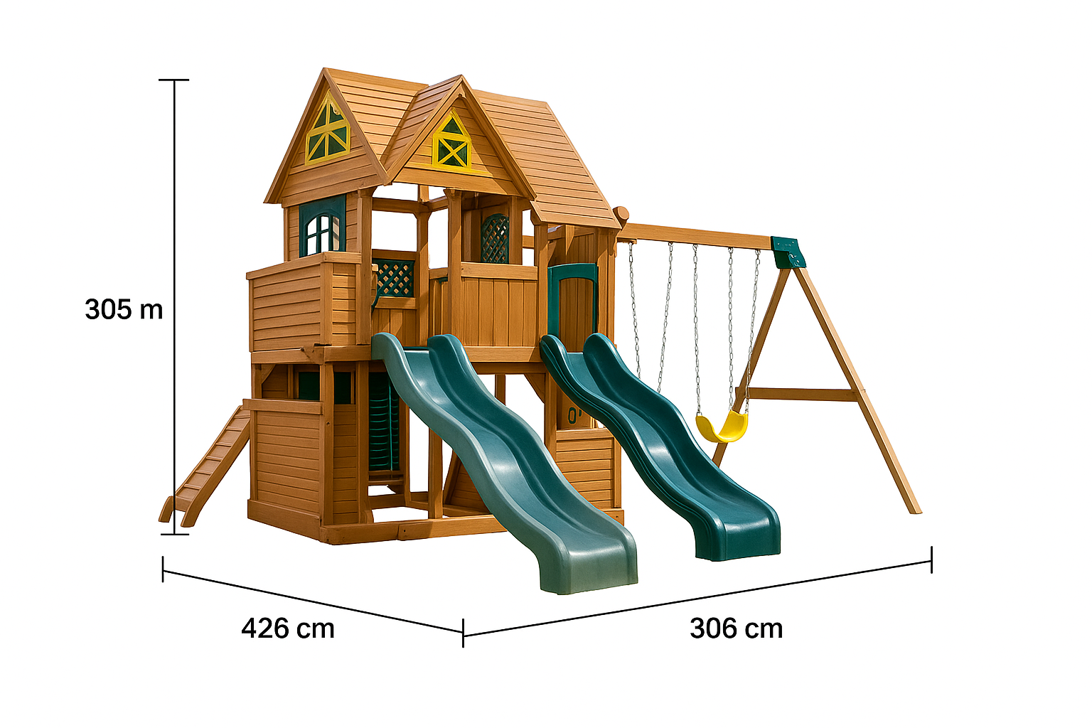 Turn your backyard into a complete playground with the Cedar Wood Outdoor Playset. Featuring dual wave slides, a sturdy swing set, and a multi-level clubhouse, this all-in-one playset is built from premium cedar wood for lasting durability and safe outdoor fun. Perfect for kids to climb, swing, slide, and explore every day.