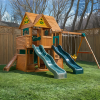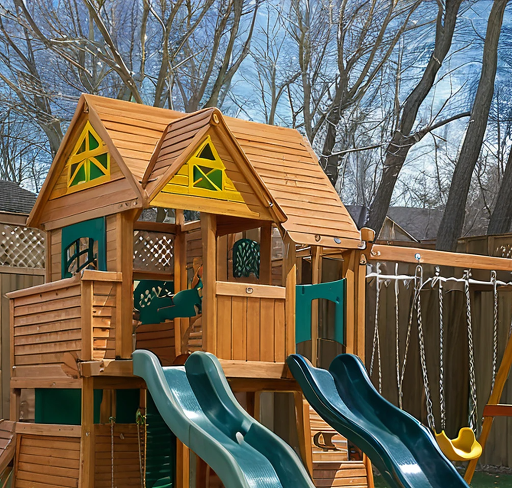 Cedar Wood Outdoor Playset with Dual Slides, Swings, and Multi-Level Clubhouse