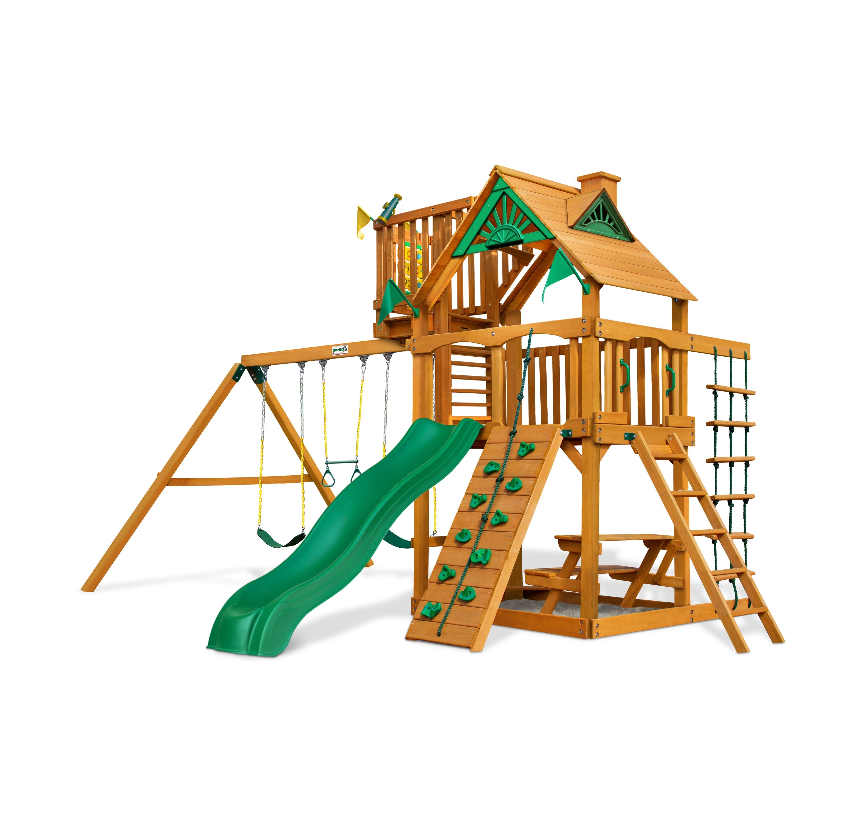 The Chateau Swing Set offers the perfect mix of climbing, sliding, swinging, and creative play. Order today and give your kids the ultimate backyard playground for years of fun!