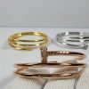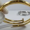 Crafted from 925 sterling silver and finished in 18K gold vermeil, the bracelet features a sleek, high‑polish surface that reflects refined brilliance. Its double‑band structure wraps smoothly around the wrist, echoing the fluid curve of a bent nail.