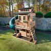 Deluxe Cedar Wood Playhouse – Two-Story Tower with Spiral Tube Slide