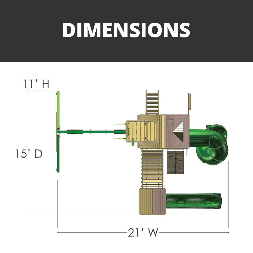 • Spacious Platforms – Includes a 4′ x 6′ main platform and a 3′ x 3′ tower platform, both elevated at 5′ for endless fun.