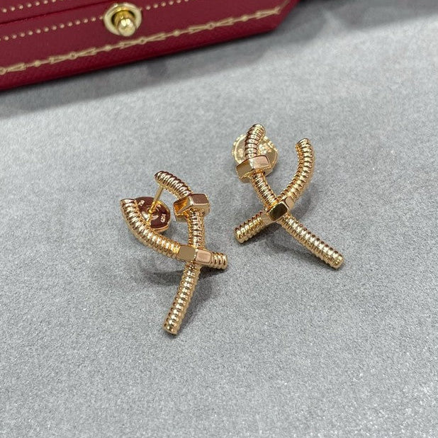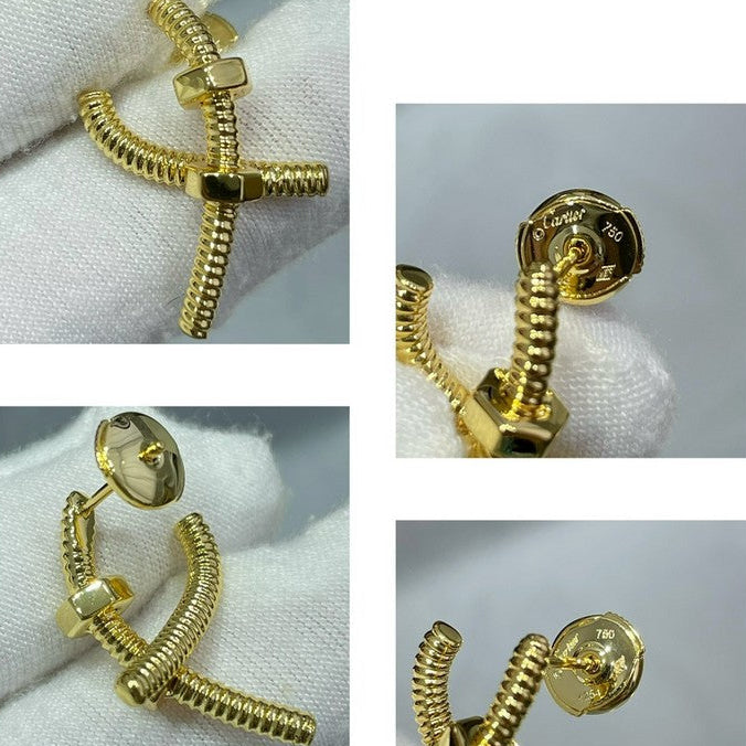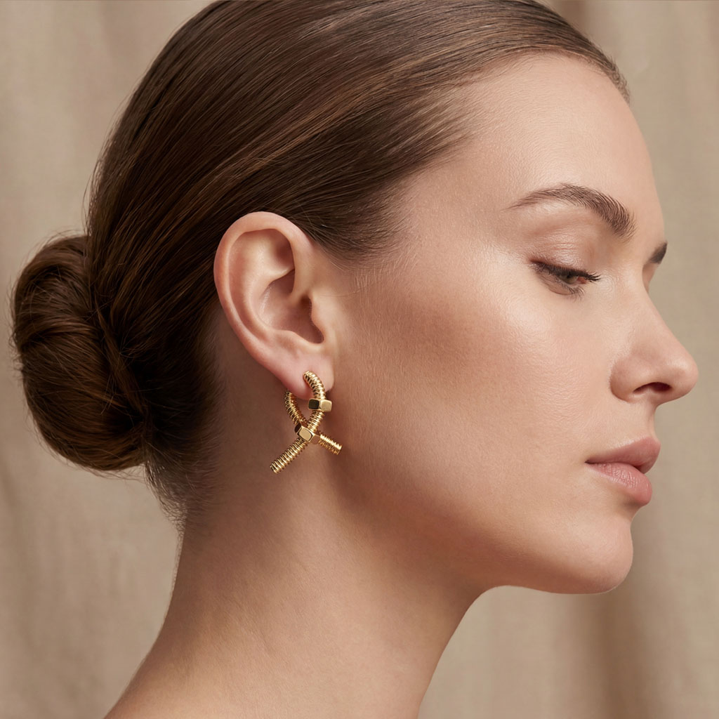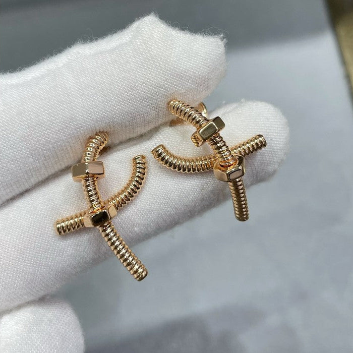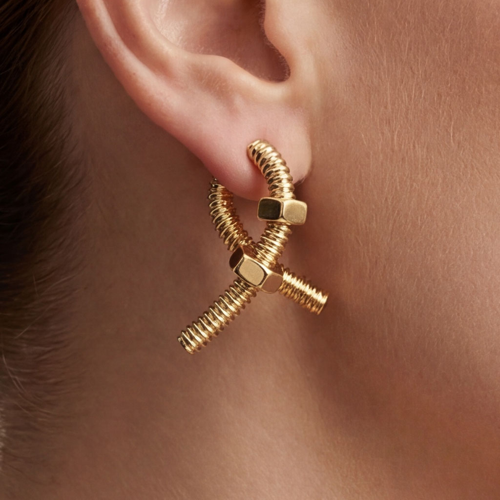 The Écrou De Earrings bring an architectural twist to contemporary jewelry, inspired by the raw elegance of nut-and-bolt forms. Crafted from 925 sterling silver and finished in radiant 18K gold vermeil, they offer a polished look with modern edge.
