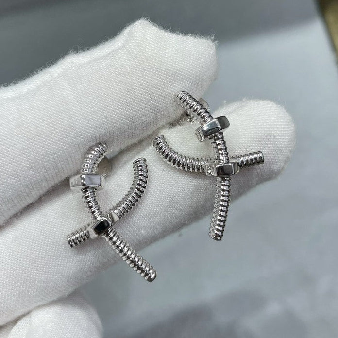 Measuring 3.0 cm in height, these sculptural earrings blend industrial lines with refined sophistication. Their bold, minimalist profile makes a statement in any setting—ideal for elevated everyday wear or standout evening styling.
