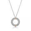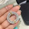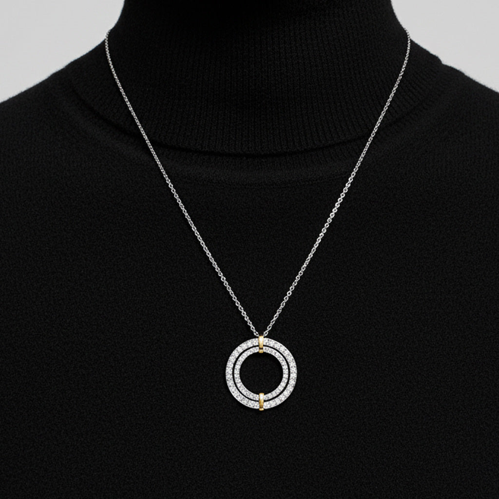 The dual-ring pendant is set with sparkling cubic zirconia (CZ), delivering a refined, diamond-like look. Polished vermeil bars add contrast and depth to the minimalist design.