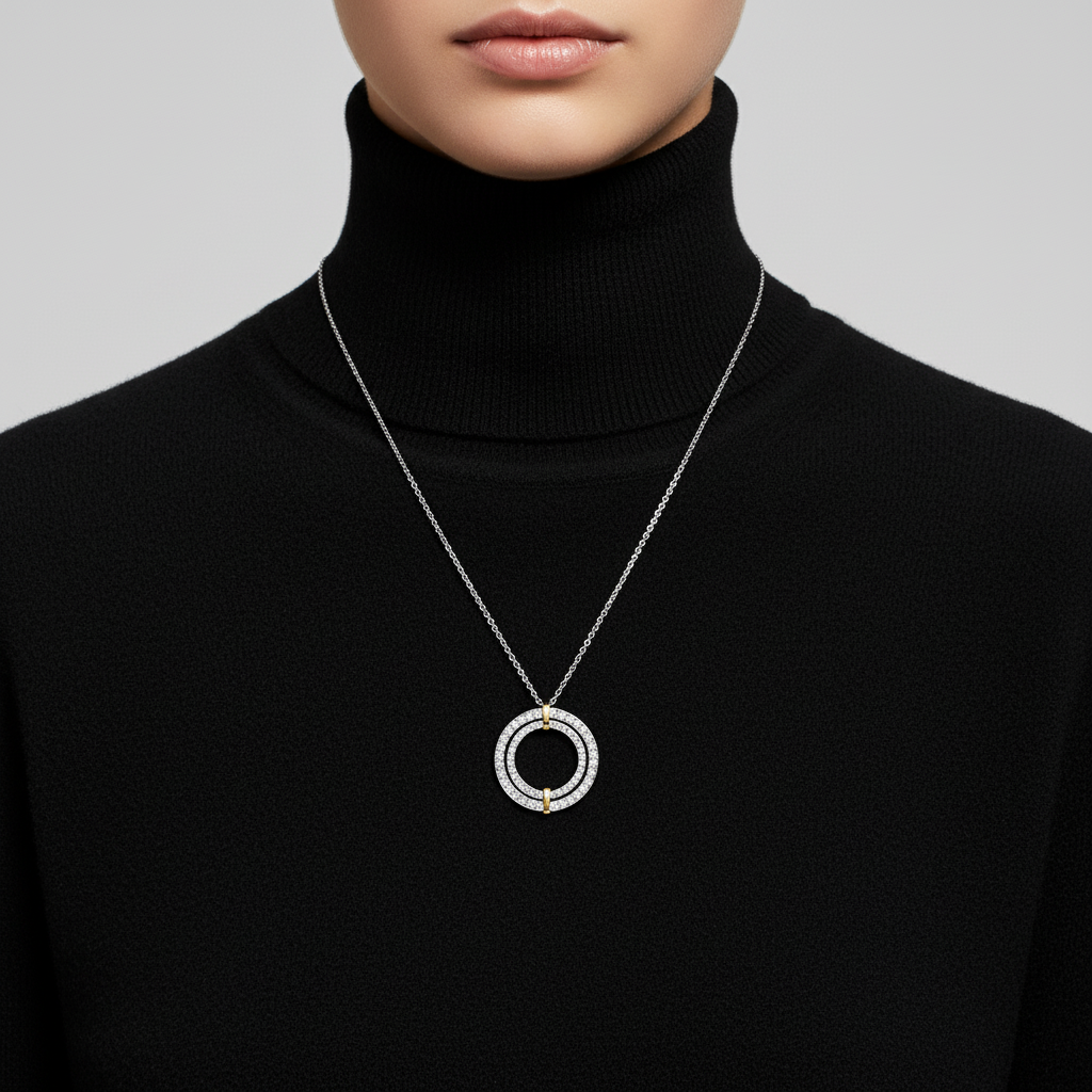 The Edge Circle Pendant Necklace showcases modern elegance with a clean circular silhouette and captivating brilliance. Expertly crafted from 18K white gold vermeil over a 925 sterling silver core, it offers the glow of gold with exceptional durability.