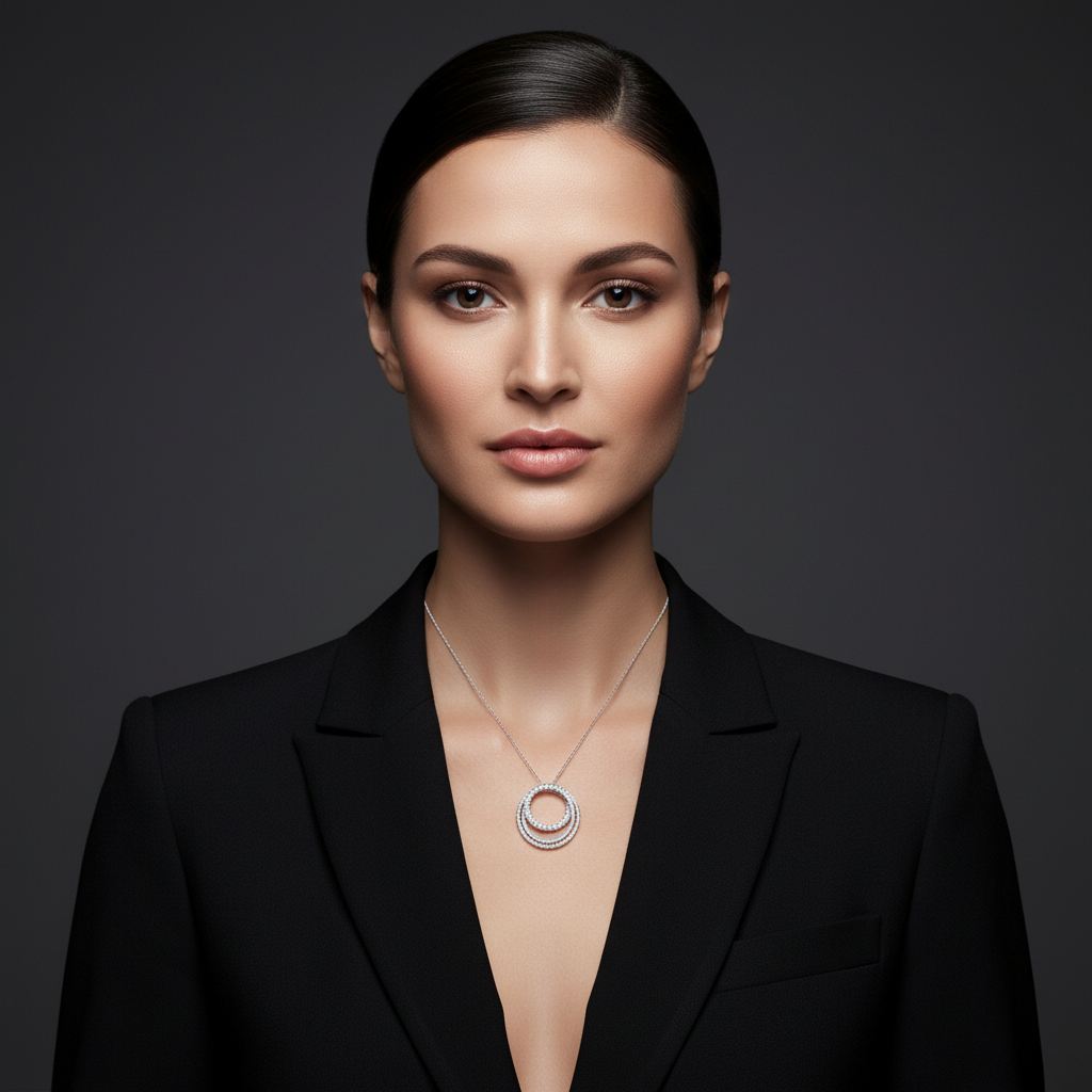 The Etincelle De Necklace radiates timeless sophistication with its sleek, contemporary silhouette. The interlocking circular pendant represents harmony and eternal connection, accented by sparkling cubic zirconia stones that catch the light with every movement.