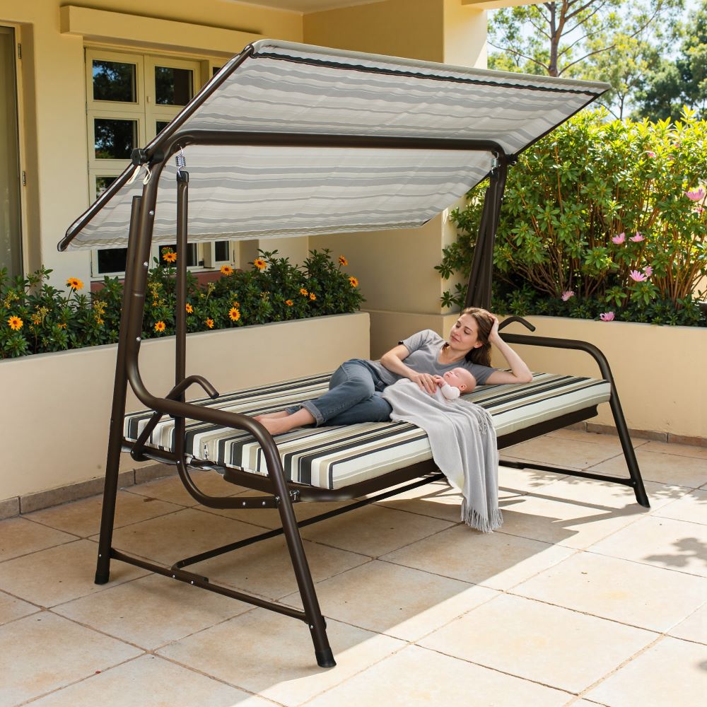 Family-Sized Outdoor Swing Chair With Adjustable Canopy