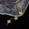 This Five Motifs Clover Bracelet features luminous mother of pearl inlays, each set in a classic clover-shaped charm. Finished in 18K gold vermeil over 925 sterling silver, this elegant piece offers a timeless glow and soft iridescence.