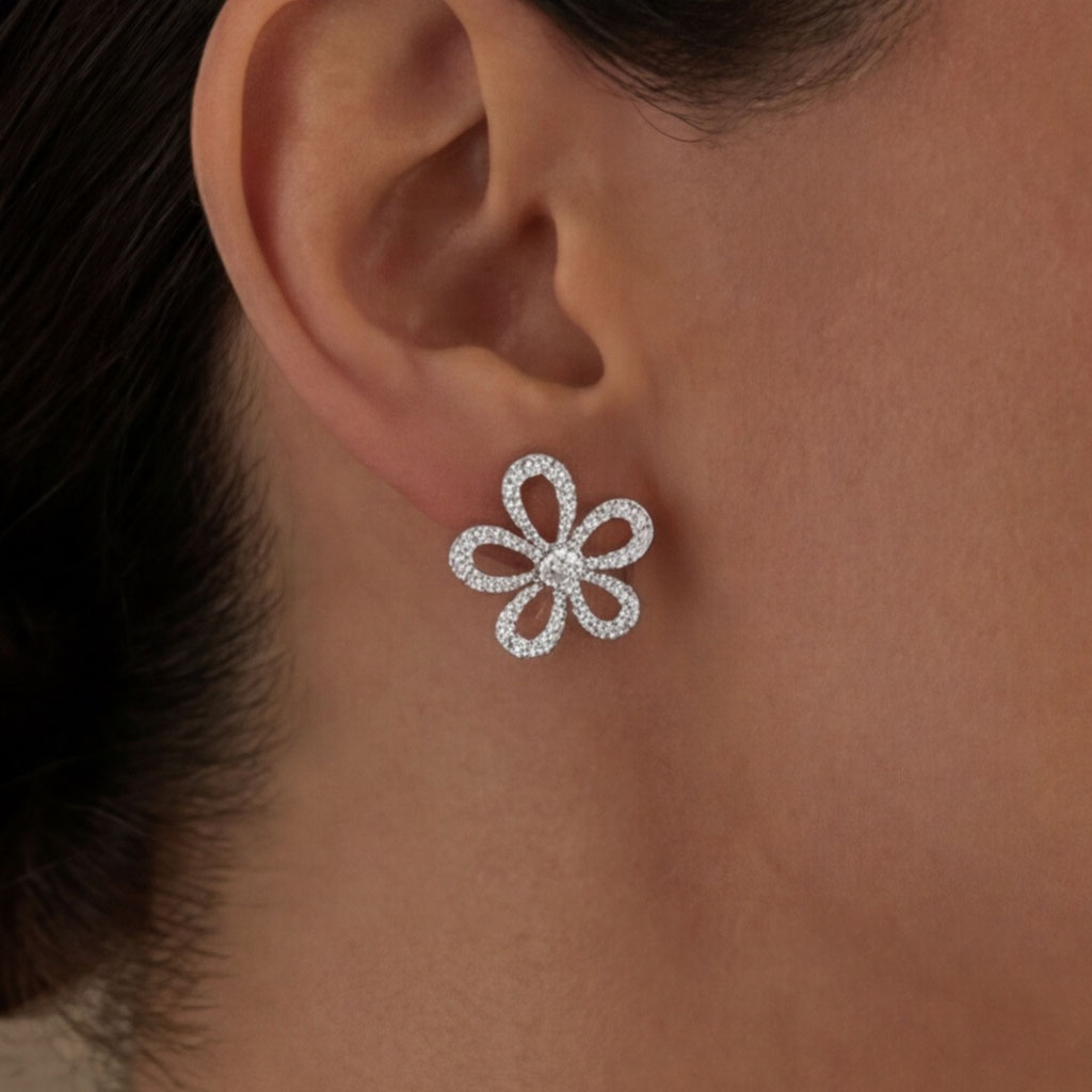 The Flowerlace Earrings reinterpret classic floral elegance through contemporary craftsmanship and refined detailing. Each piece is meticulously crafted with a 925 sterling silver core and finished in 18K white gold vermeil, offering a luminous, long-lasting shine.