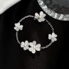 Crafted from 925 sterling silver and finished in 18K white gold vermeil, this bracelet achieves a luminous, polished appearance with enduring appeal. The 18 cm length fits comfortably on most wrists, with each flower designed to evoke softness and sophistication.