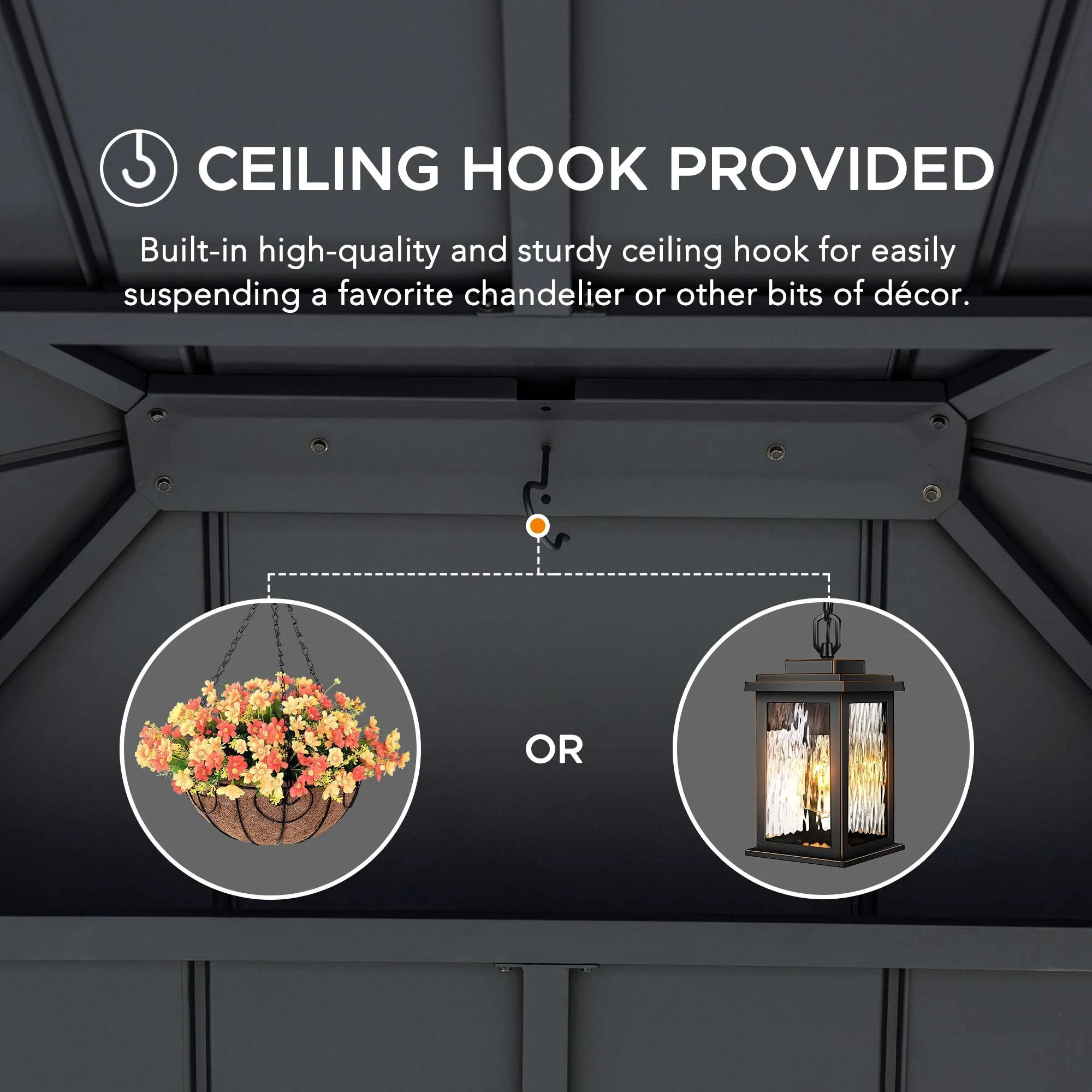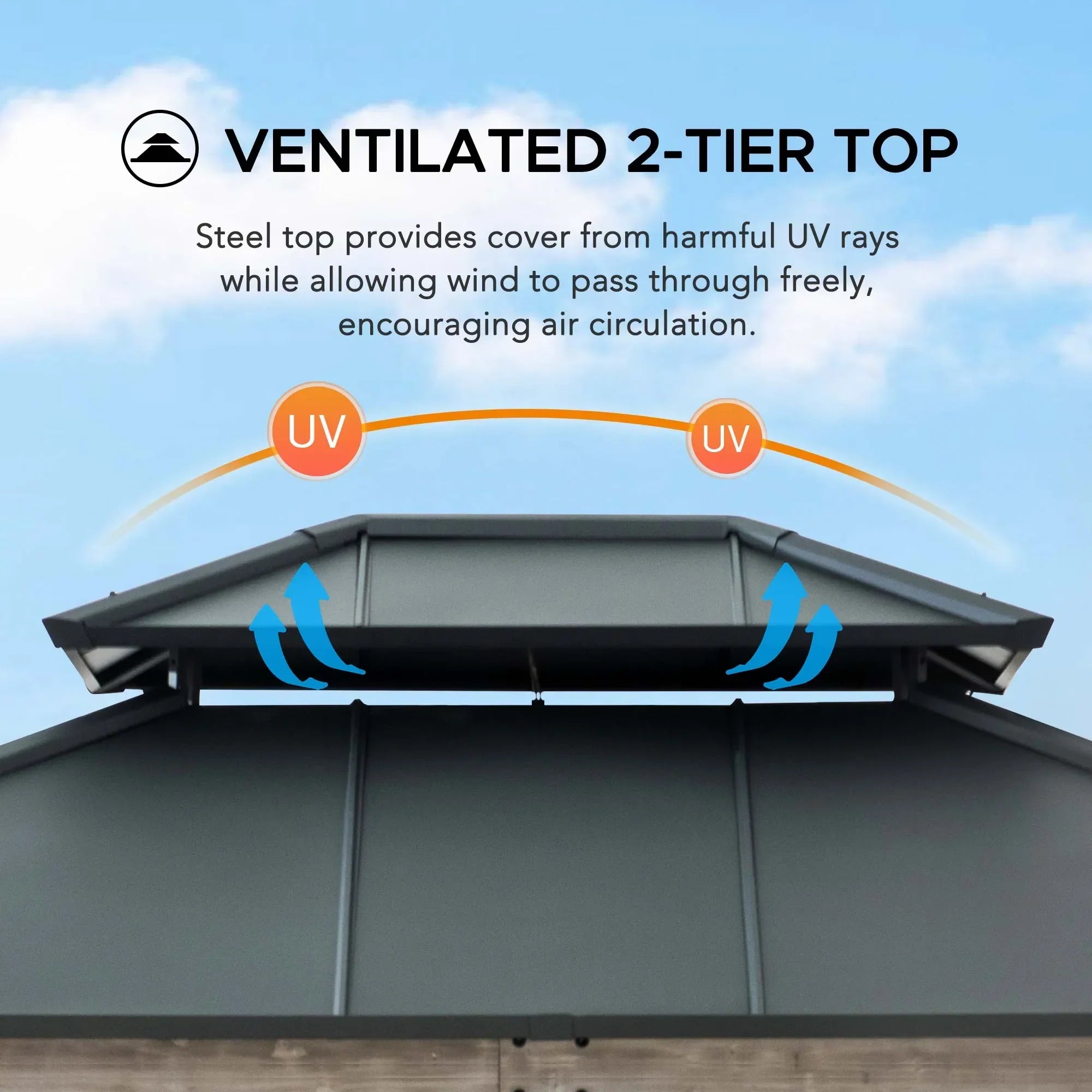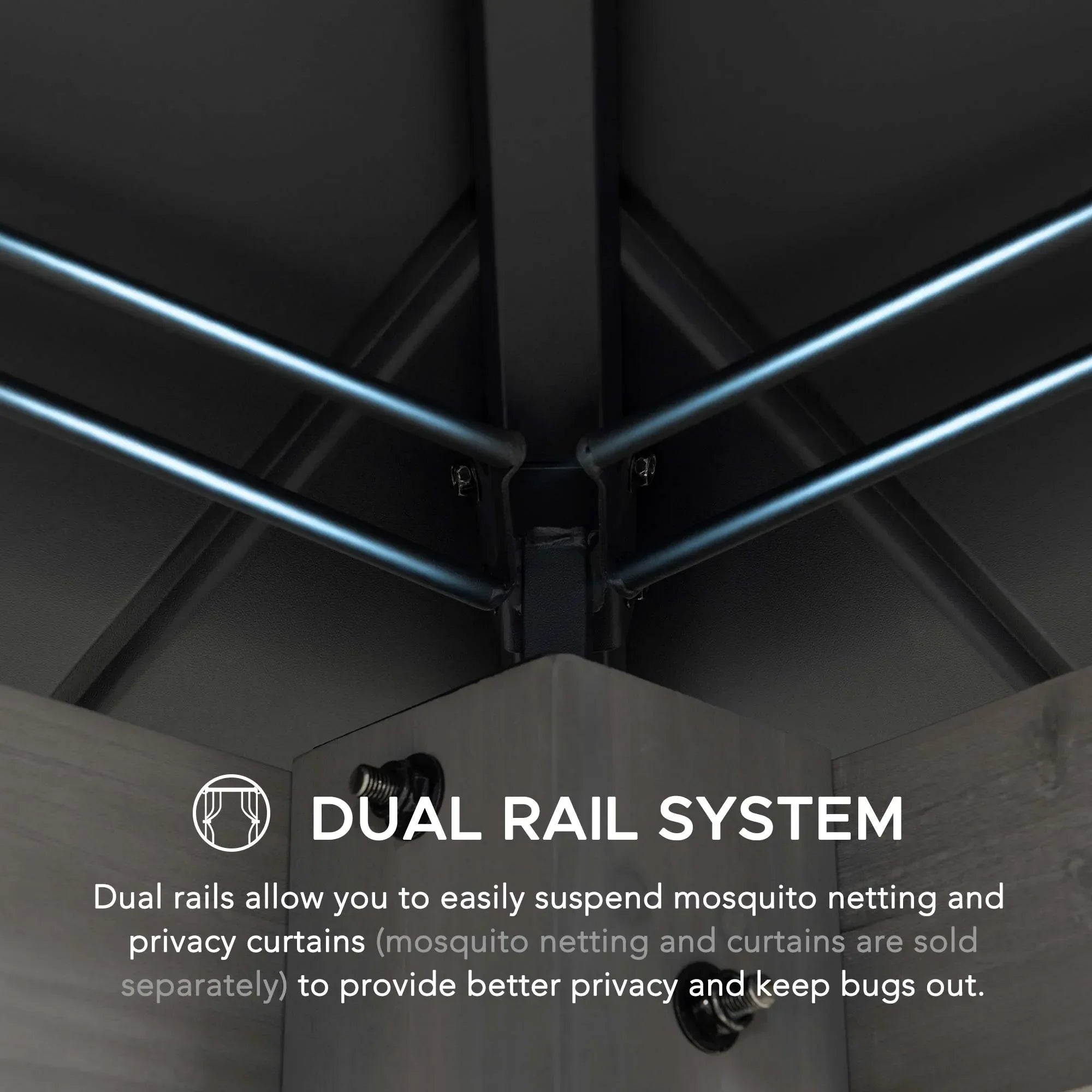 10x12 Wood Gazebo with 2-tier Metal Roof and Ceiling Hook - Driftwood Cedar
